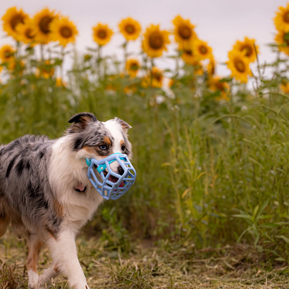 Os modelos coloridos e designs apelativos ajudam a que o açaime não seja visto como algo “assustador” ou marcado como algo só para cães “problemáticos”. A ideia é normalizar o seu uso, mostrar que um cão de açaime pode passear feliz, confiante, bonito.