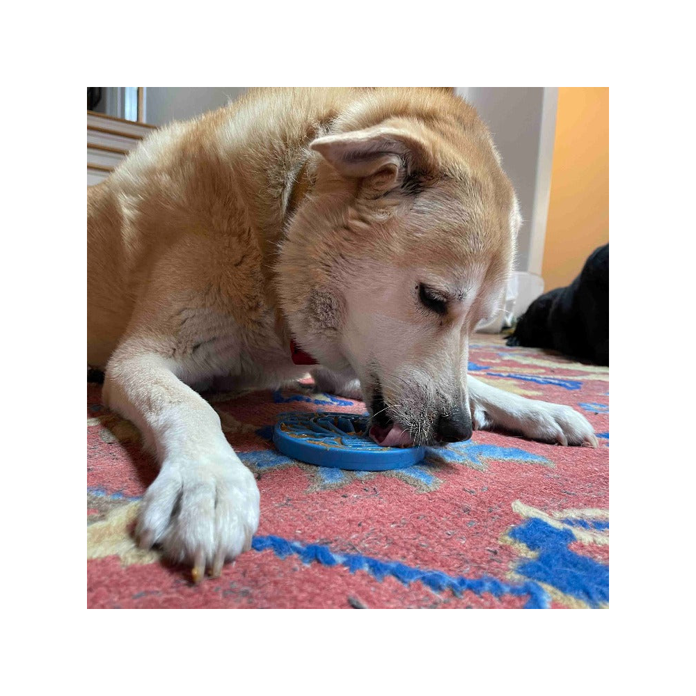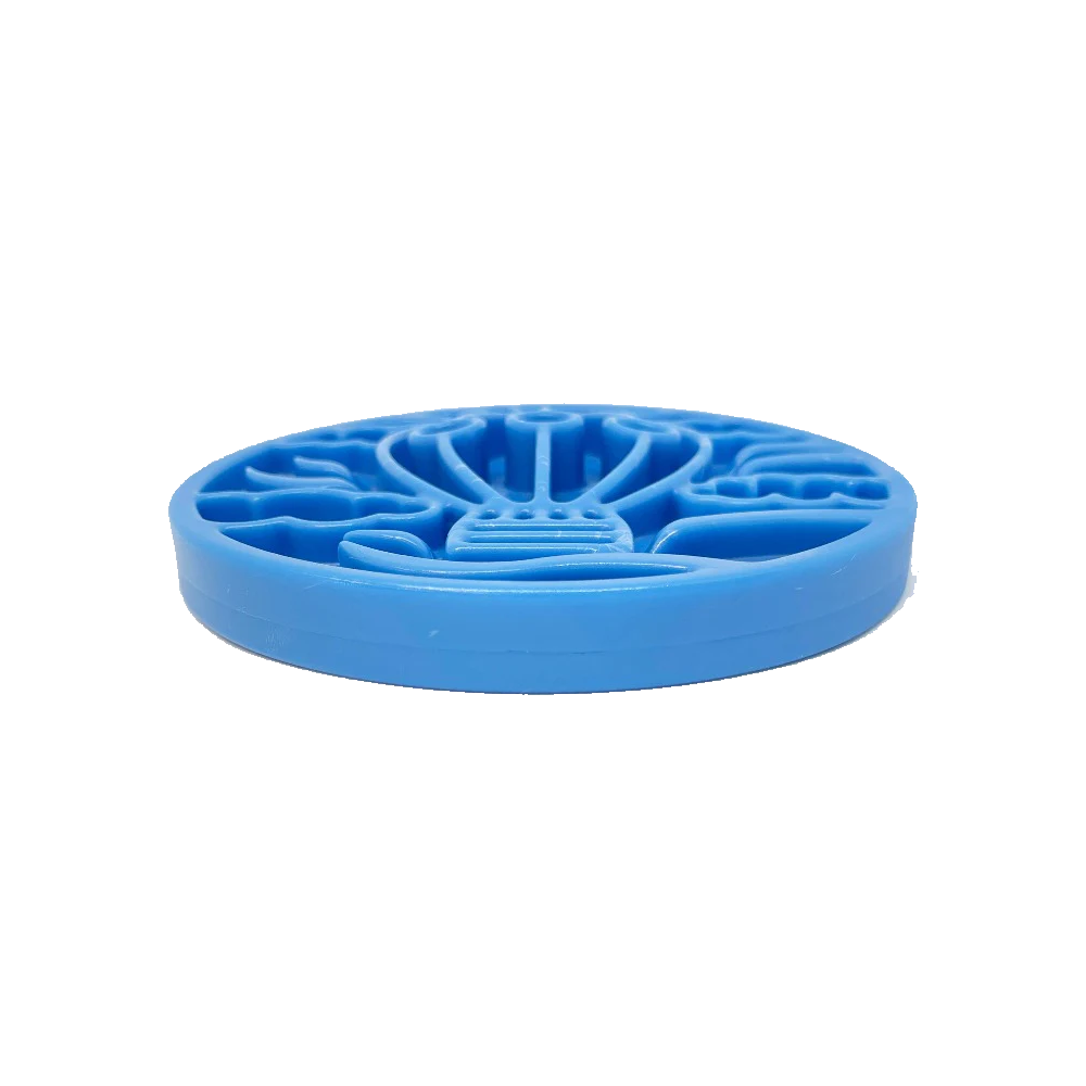 ENRIQUECIMENTO: Este ecoin de nylon ultra-durável com um motivo de balão de ar quente foi concebido para snacks de enriquecimento e construído para suportar aqueles cães excitáveis que por vezes mastigam os seus tapetes de lamber. Este brinquedo ajuda a manter o seu cão entretido e resolve problemas de comportamento de mastigação. Espalhe alimentos moles na superfície e deixe o seu cão lamber!