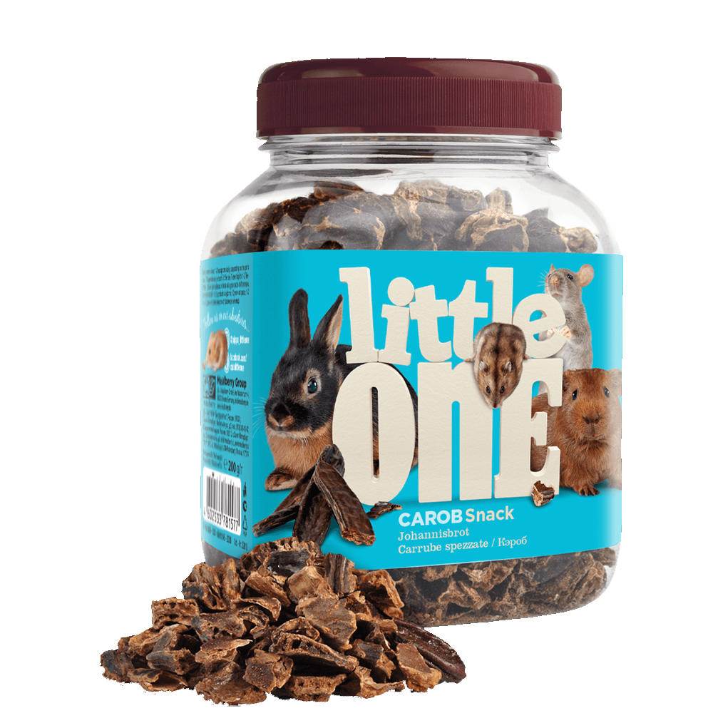 Tem excelentes propriedades nutritivas, sendo rica em vitaminas do complexo B, cálcio, ferro, magnésio e outros minerais. De sabor doce, a alfarroba é um dos snacks favoritos dos roedores!