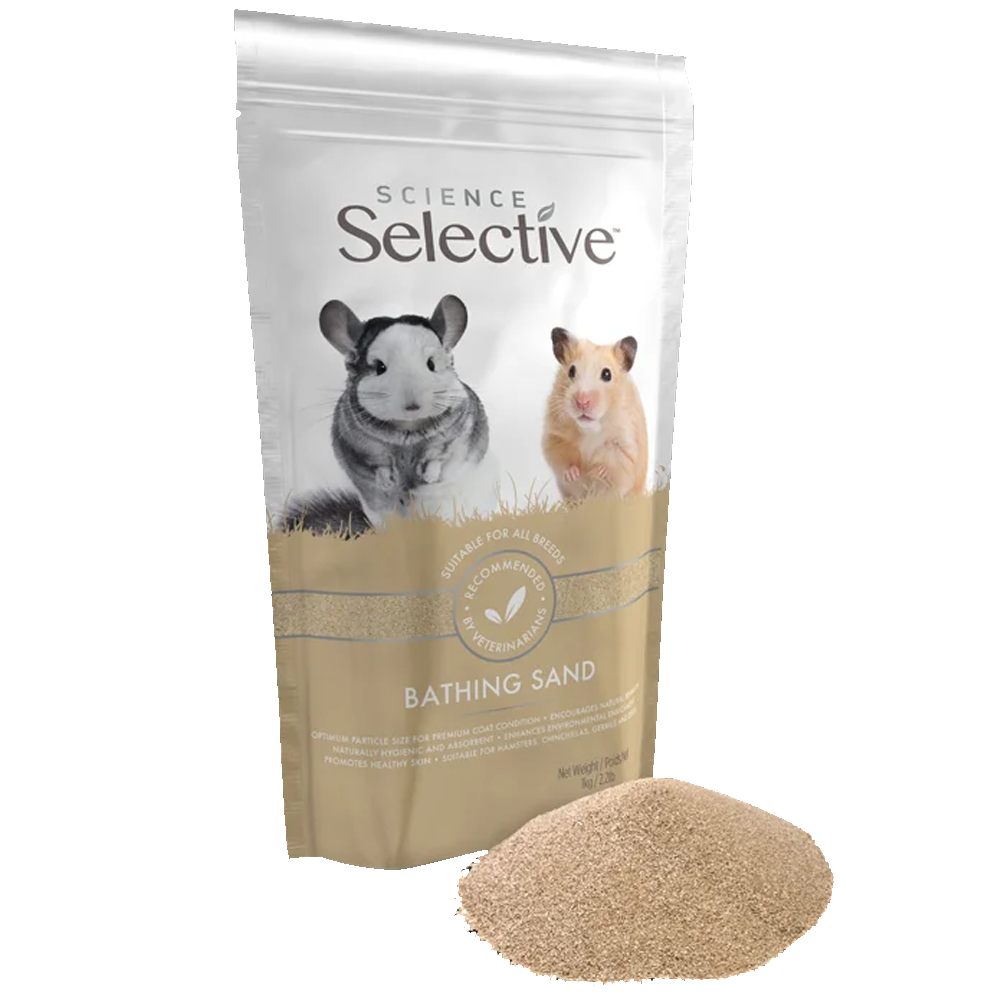 • Pacote de areia para banho para roedores Science Selective com imagens de chinchila e hamster