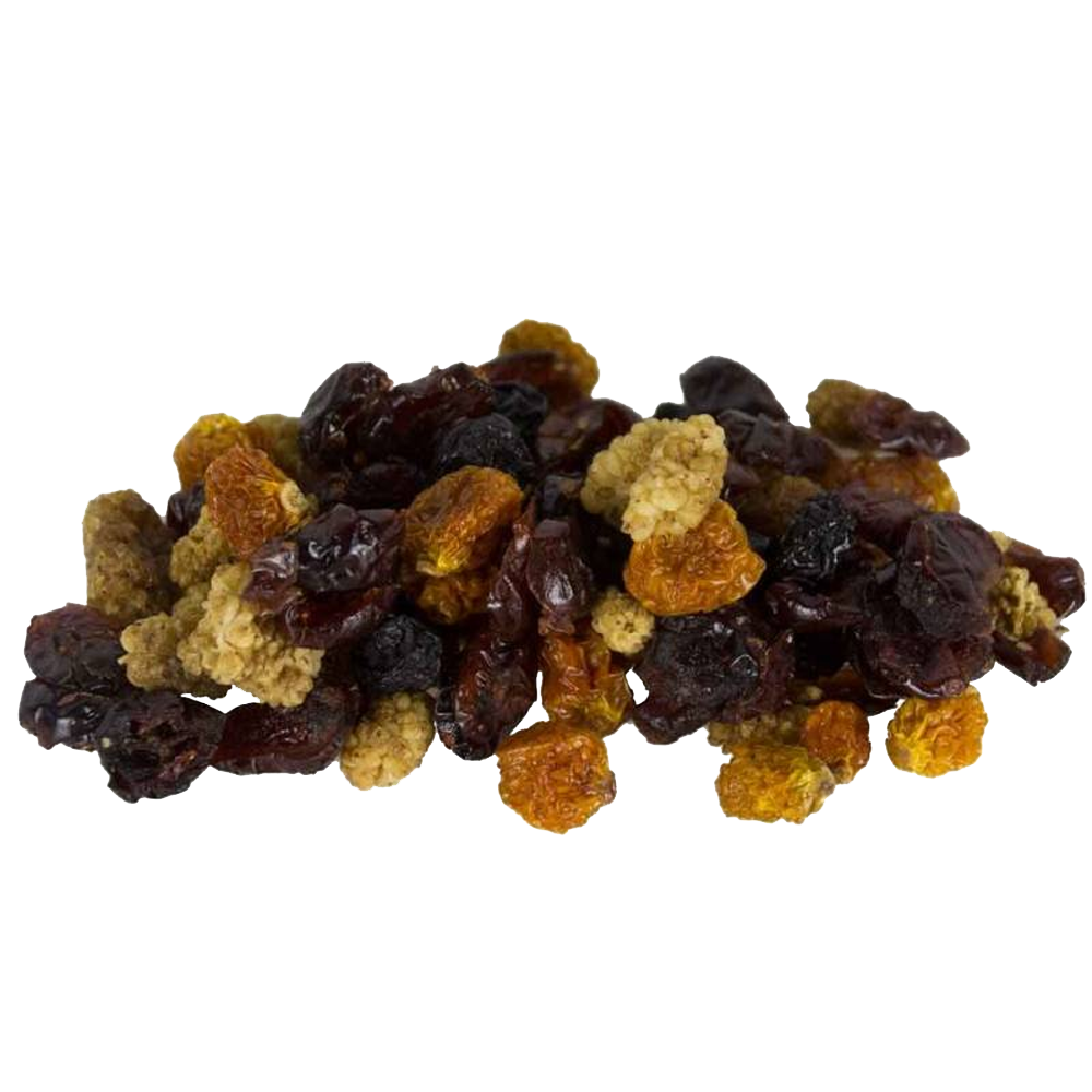 Uma mistura única de frutas silvestres muito apreciada por papagaios e outros animais. Uma parte importante da dieta de aves e roedores, além das sementes, é a suplementação com frutas, nozes, vegetais, flores e insetos. Muitas misturas de sementes não fornecem estes importantes elementos nutricionais.
