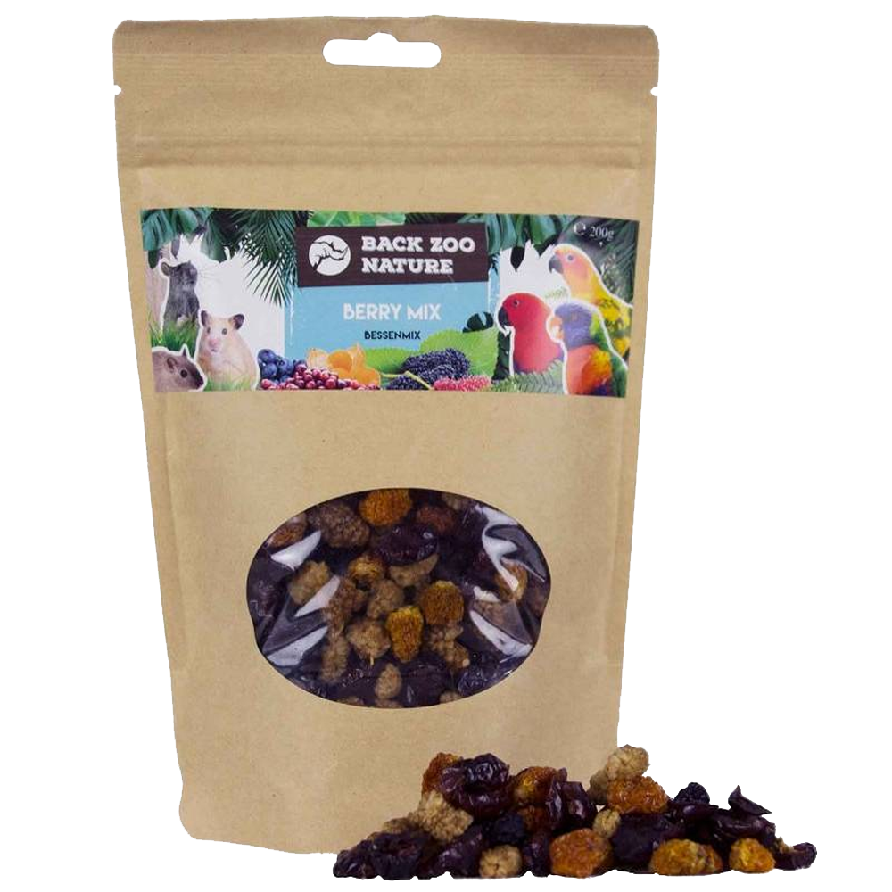 Este Berry Mix da Back Zoo Nature é de alta qualidade, especialmente para pássaros e roedores. O Back Zoo Nature Berry Mix pode ser utilizado de diversas formas, para misturar com alimentos para uma dieta mais completa, ou como lanche ou recompensa. O seu periquito, papagaio ou roedor já experimentou o Berry Mix da Back Zoo Nature? Composto por diferentes tipos de frutos silvestres numa mistura!