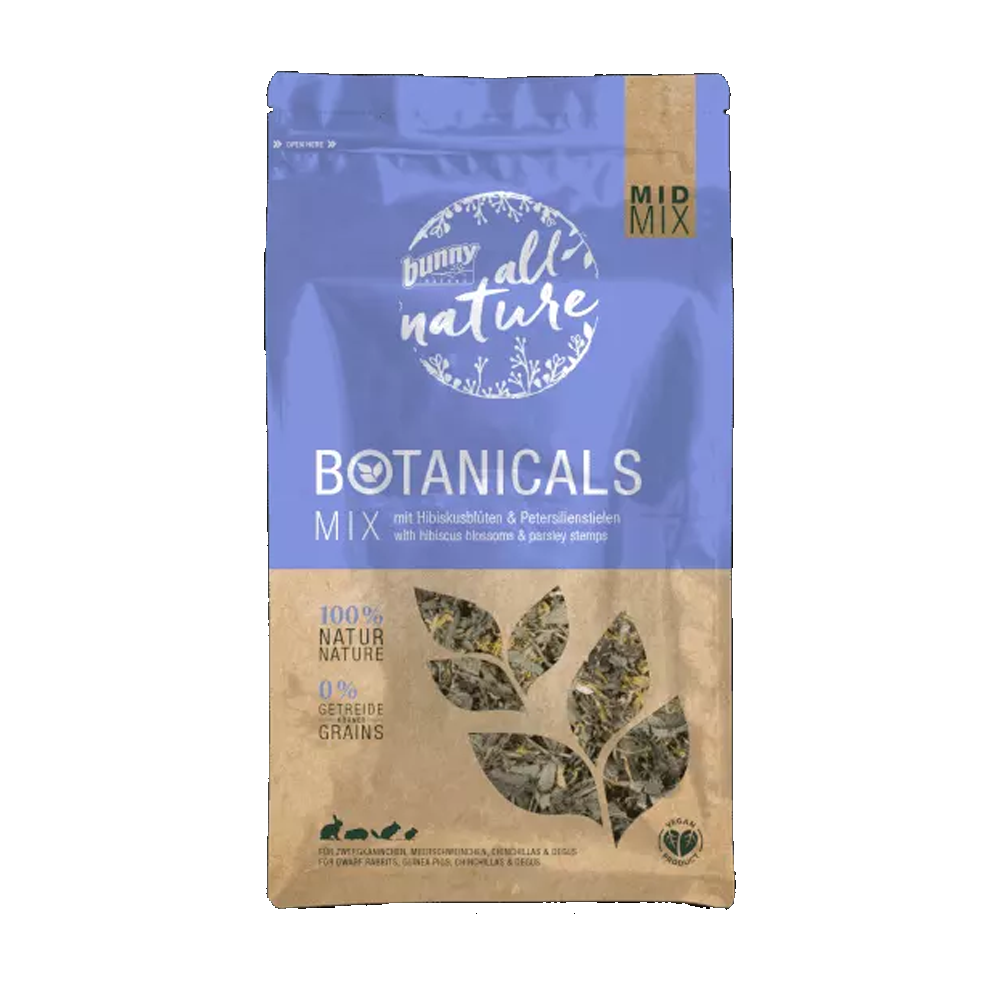 ... os »BOTANICALS MAXI MIX e MID MIX totalmente naturais« são particularmente bons devido aos seus ingredientes finos e composição natural. A mistura corresponde à dieta natural dos herbívoros e complementa idealmente o seu menu diário. Todas as variedades têm um sabor deliciosamente fresco e proporcionam uma variedade saborosa