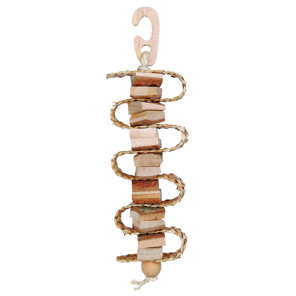 • Brinquedo pendente para pássaros em madeira e corda