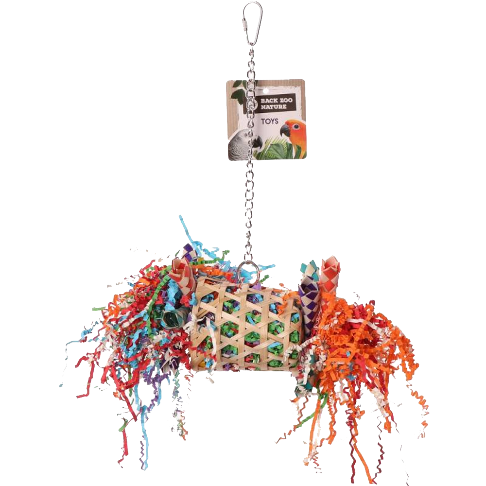 A cesta surpresa tecida é preenchida com papel amassado de cores vivas que seu bico torto pode rasgar. Você pode facilmente colocar sua comida de pássaro ou lanches favoritos na cesta para se divertir muito. Brinquedos que oferecem oportunidades de forrageamento darão ao seu papagaio o estímulo mental natural de que ele precisa. Com a cesta surpresa tecida, seu papagaio pode procurar comida por horas.