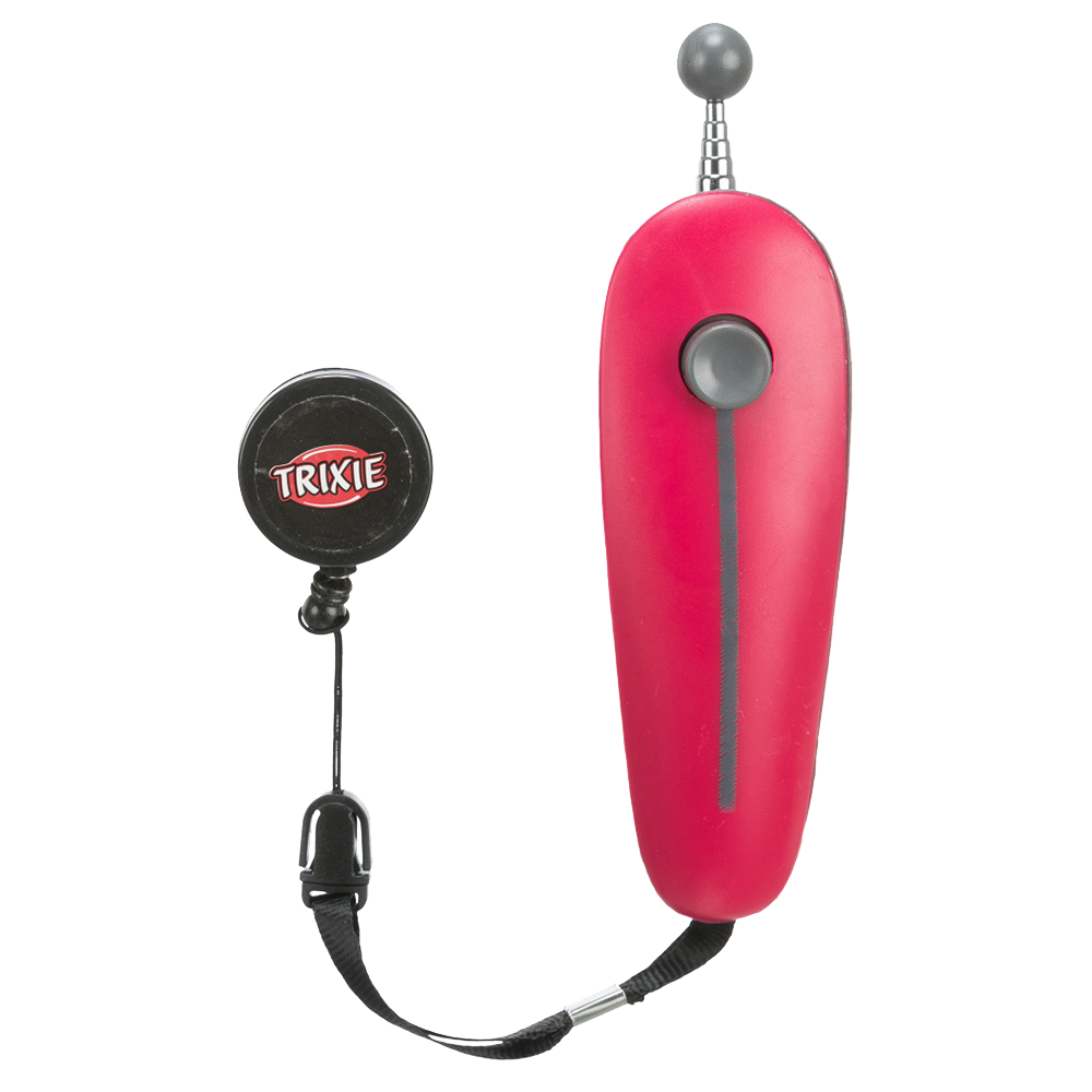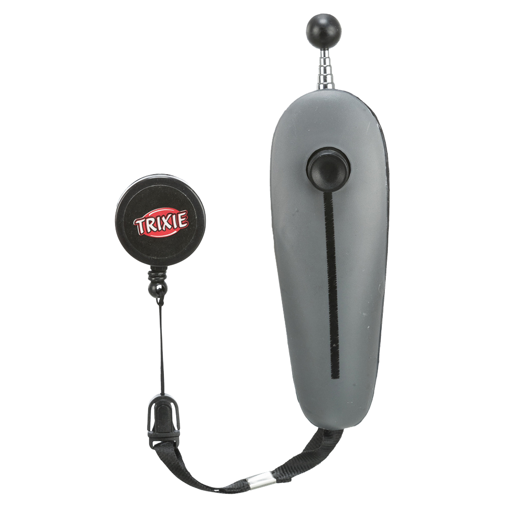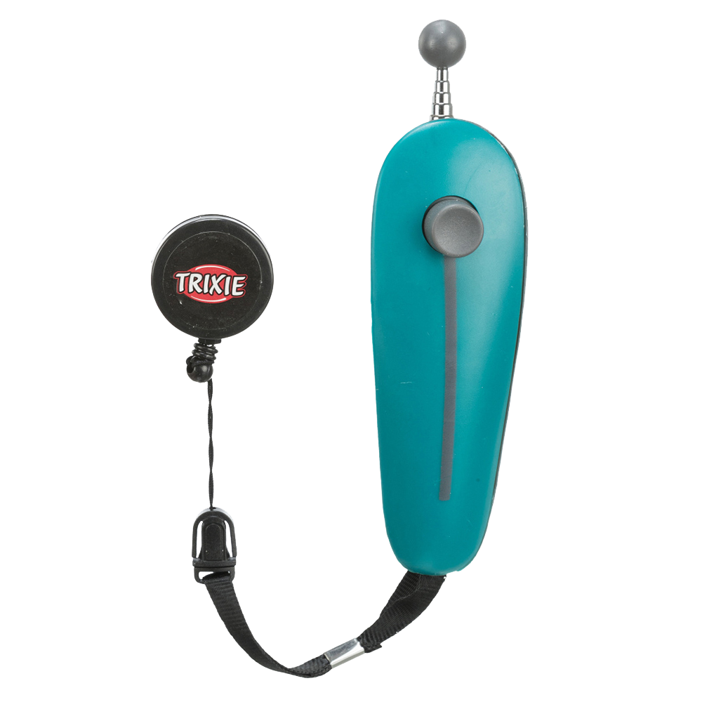 • Comando de treino para animais Trixie azul com botão cinzento e cordão preto