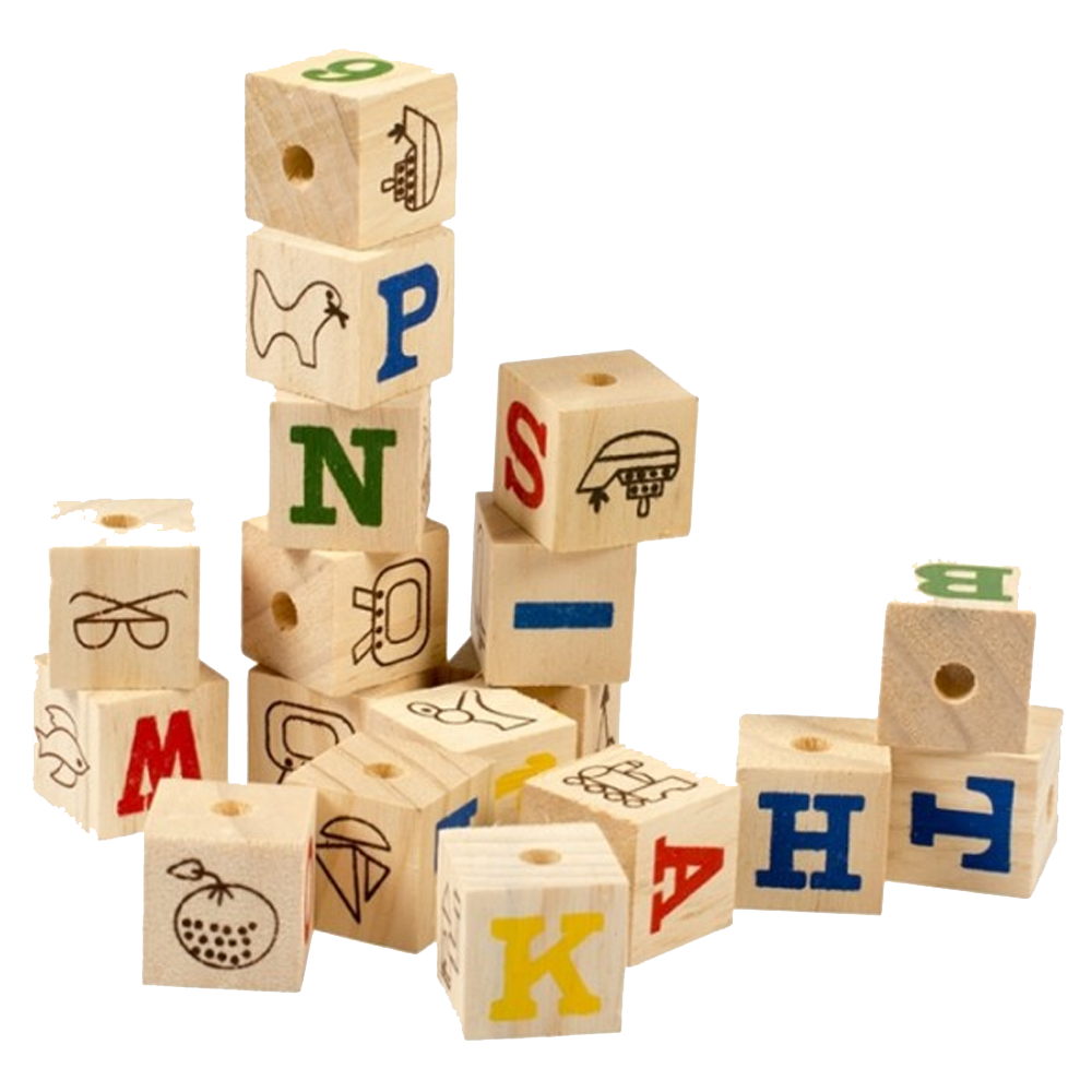 • Blocos de madeira coloridos com letras e imagens para crianças