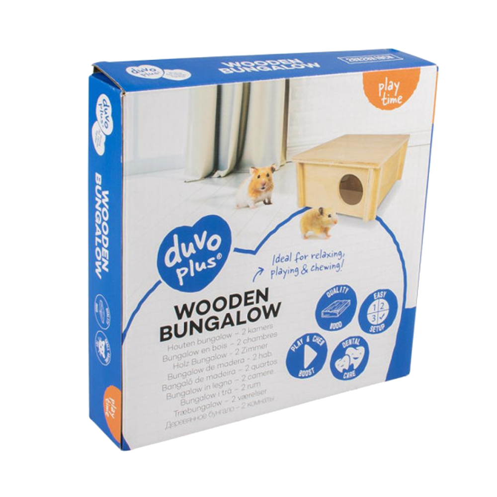 • Caixa do bangalô de madeira duvo plus para pequenos roedores com fotos e descrições