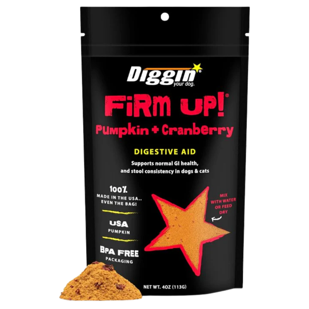 FiRM UP! Cranberry. Suplemento alimentar digestivo 100% natural, isento de corantes, conservantes e aditivos para cães e gatos. Regulador gastrointestinal, prebiótico e auxiliar na saúde urinária com abóbora, pectina de maçã e pedaços de arando. Embalagem de 113g.