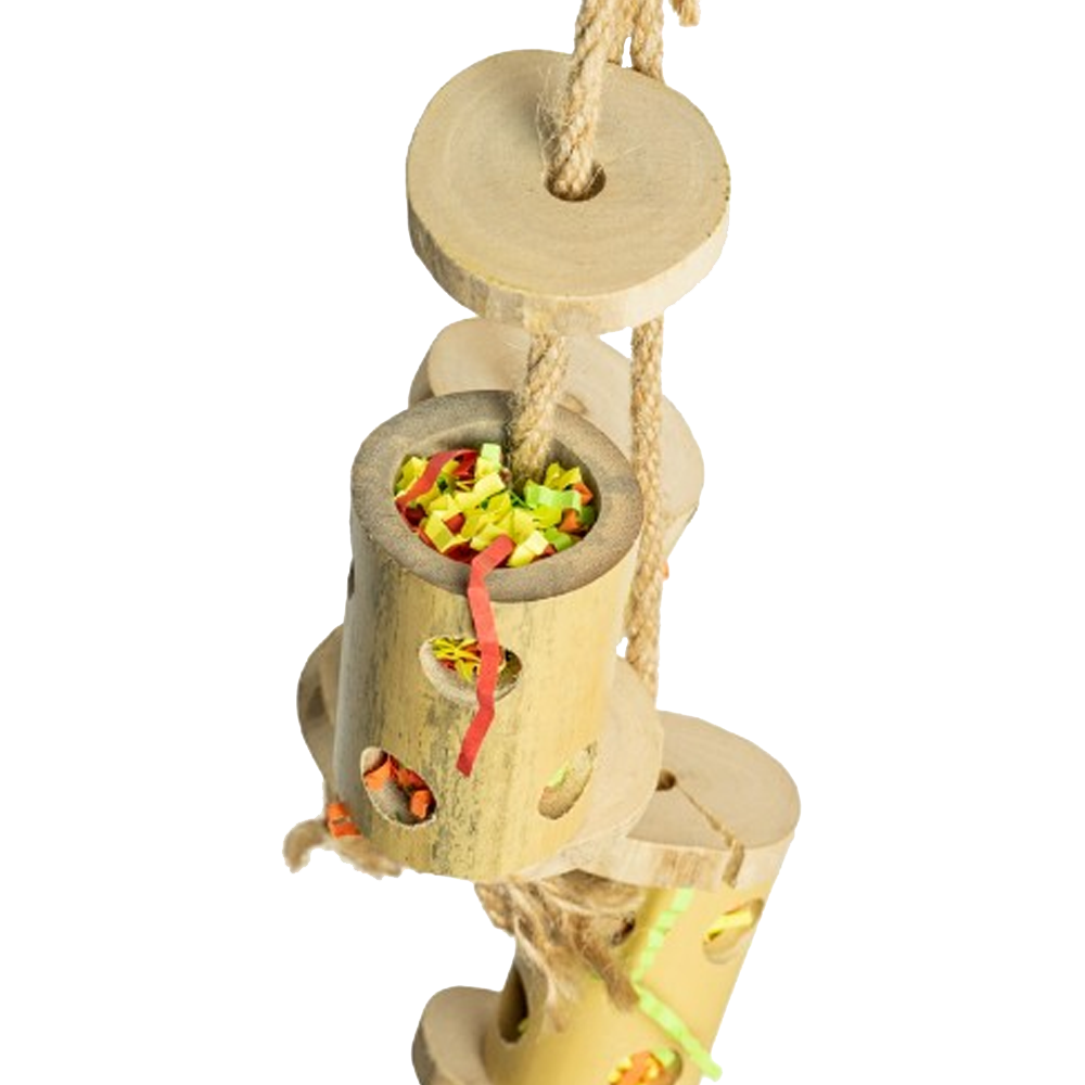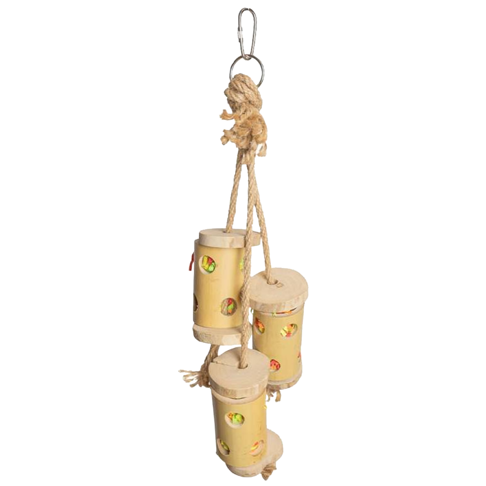O foraging Bambu da Back Zoo Nature é o brinquedo perfeito para esconder os petiscos mais saborosos! A Forrageira de Bambu consiste em nada menos que 3 tubos com furos pré-perfurados através dos quais seu pássaro deve fazer seu lanche. A parte superior e inferior dos tubos podem ser abertas com discos de madeira soltos, para que você possa esconder salgadinhos entre o papel amassado dos tubos.