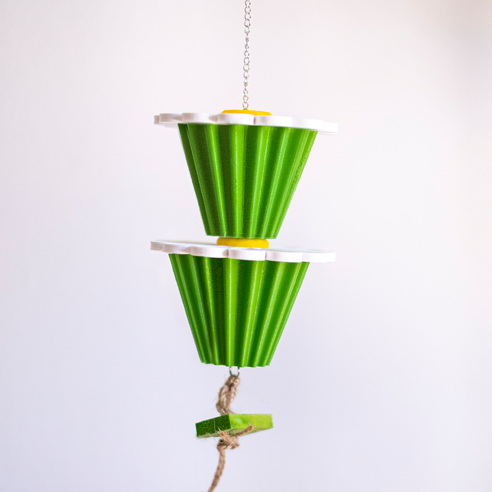 Este brinquedo é desenhado e produzido em Portugal, com recurso à tecnologia de impressão 3D. É feito em PLA, Ácido Poliláctico, que é um bioplástico feito através de recursos renováveis como o amido de milho e a cana de açúcar. O PLA usado na produção destes productos é também de produção nacional. O PLA é um material não tóxico e seguro para estar em contacto com os alimentos secos dos nossos animais.