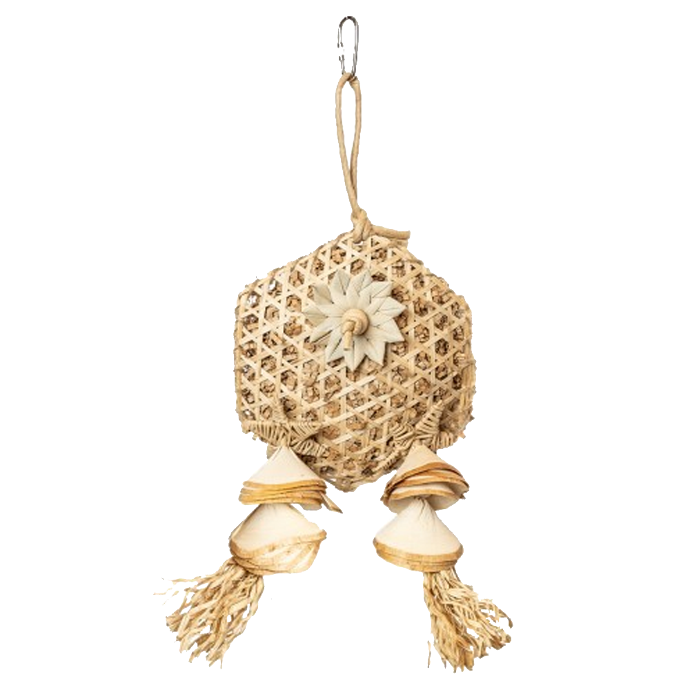A Funny Flower da Back Zoo Nature faz parte da nossa Linha Pure. A Linha Pure representa a pureza intocada dos materiais naturais utilizados e é feita a partir de materiais cuidadosamente selecionados, como vagens de mogno, pinhas, casca de coco, bolas de vinho trançadas e folhas de palmeira. Esses materiais naturais não apenas proporcionam horas de diversão, mas também estimulam o instinto natural de forrageamento de periquitos e papagaios.