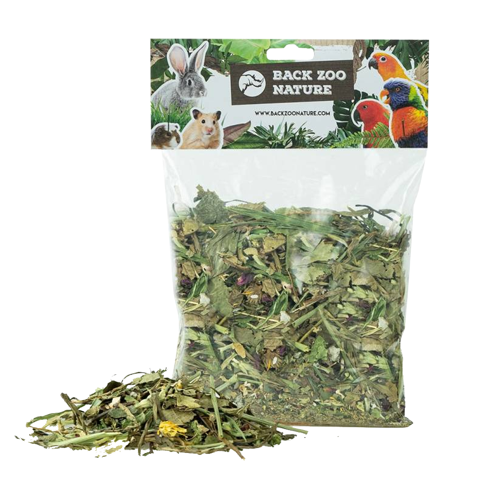 Mistura de ervas para roedores herbivoros, pode tambem ser usado como textura para foraging para aves e roedores.
