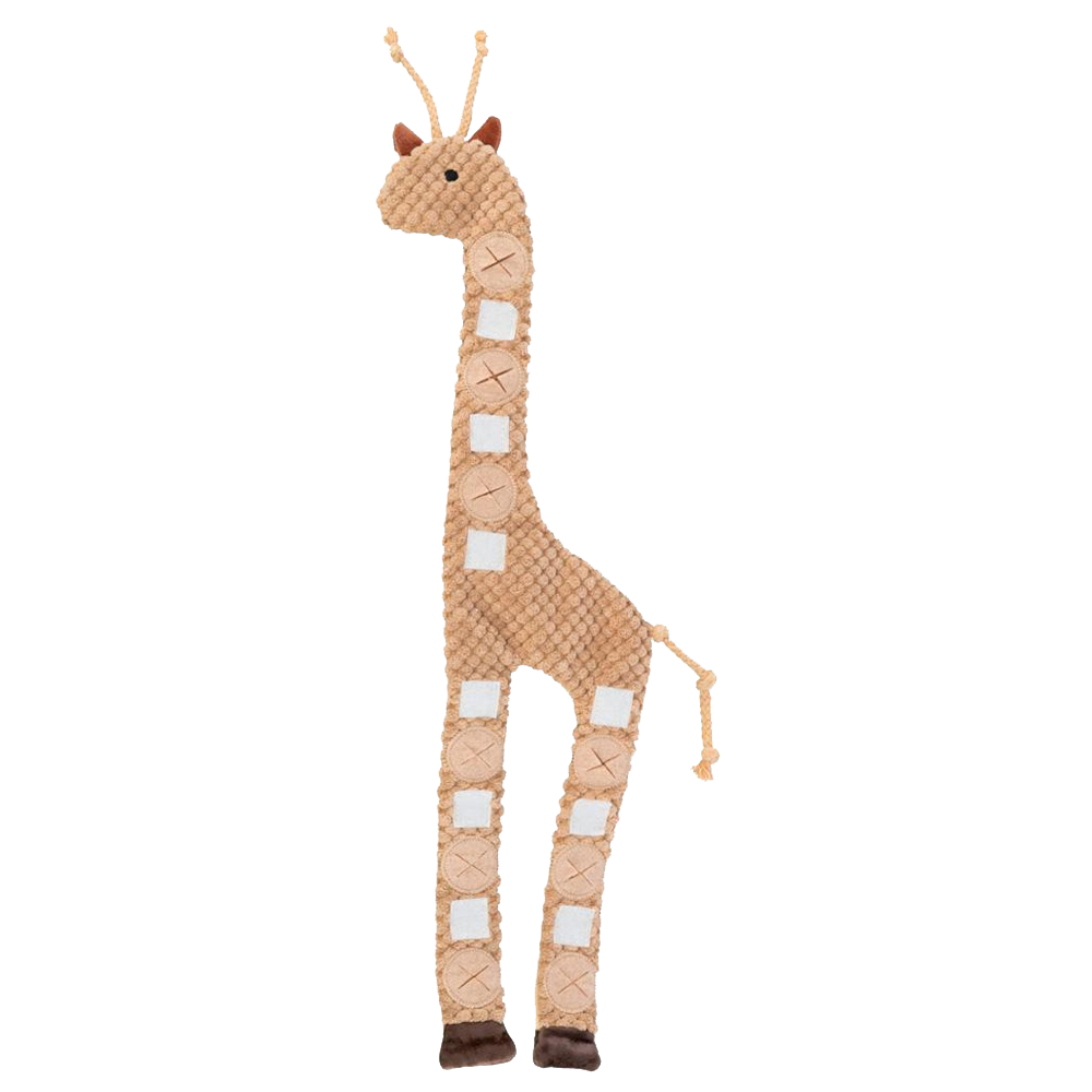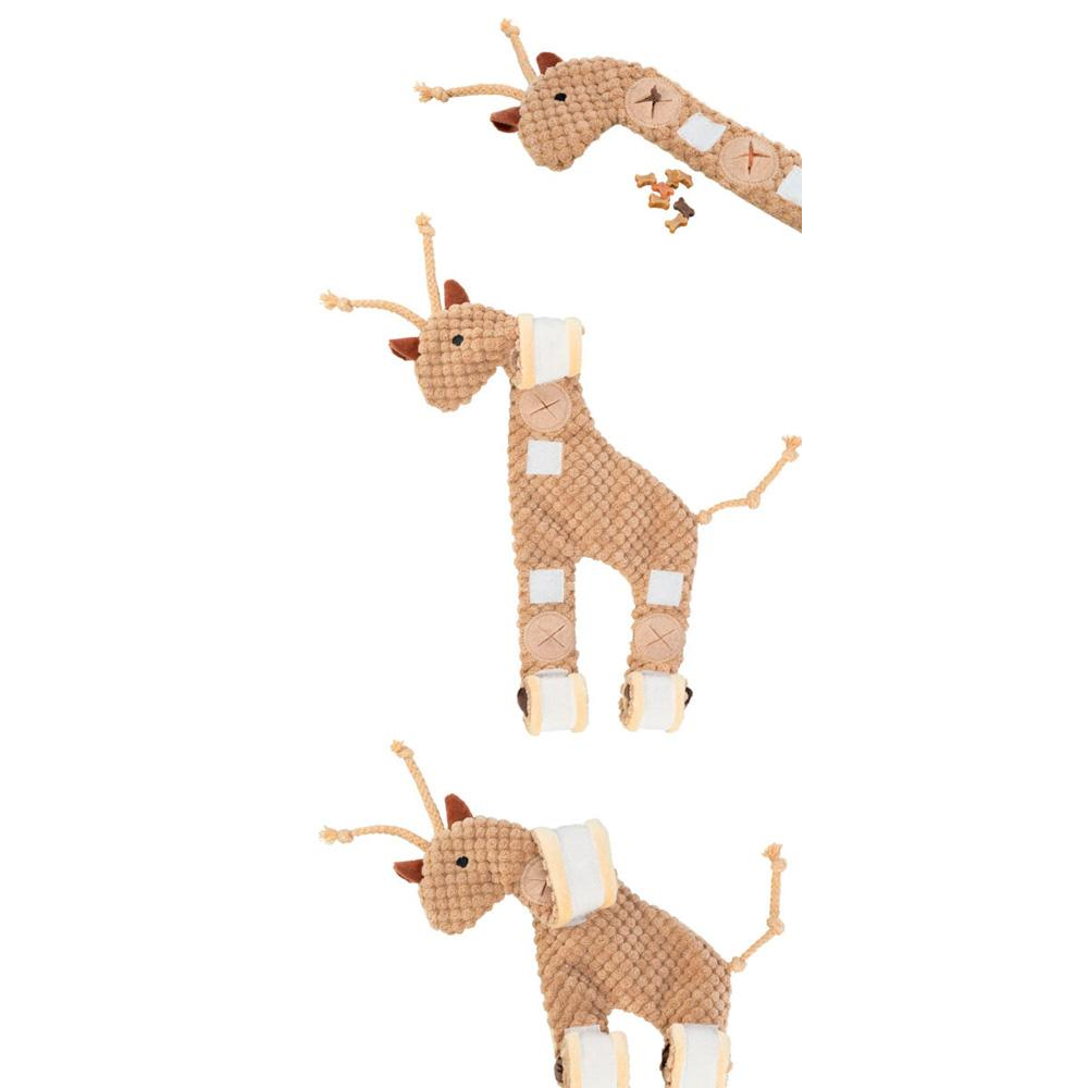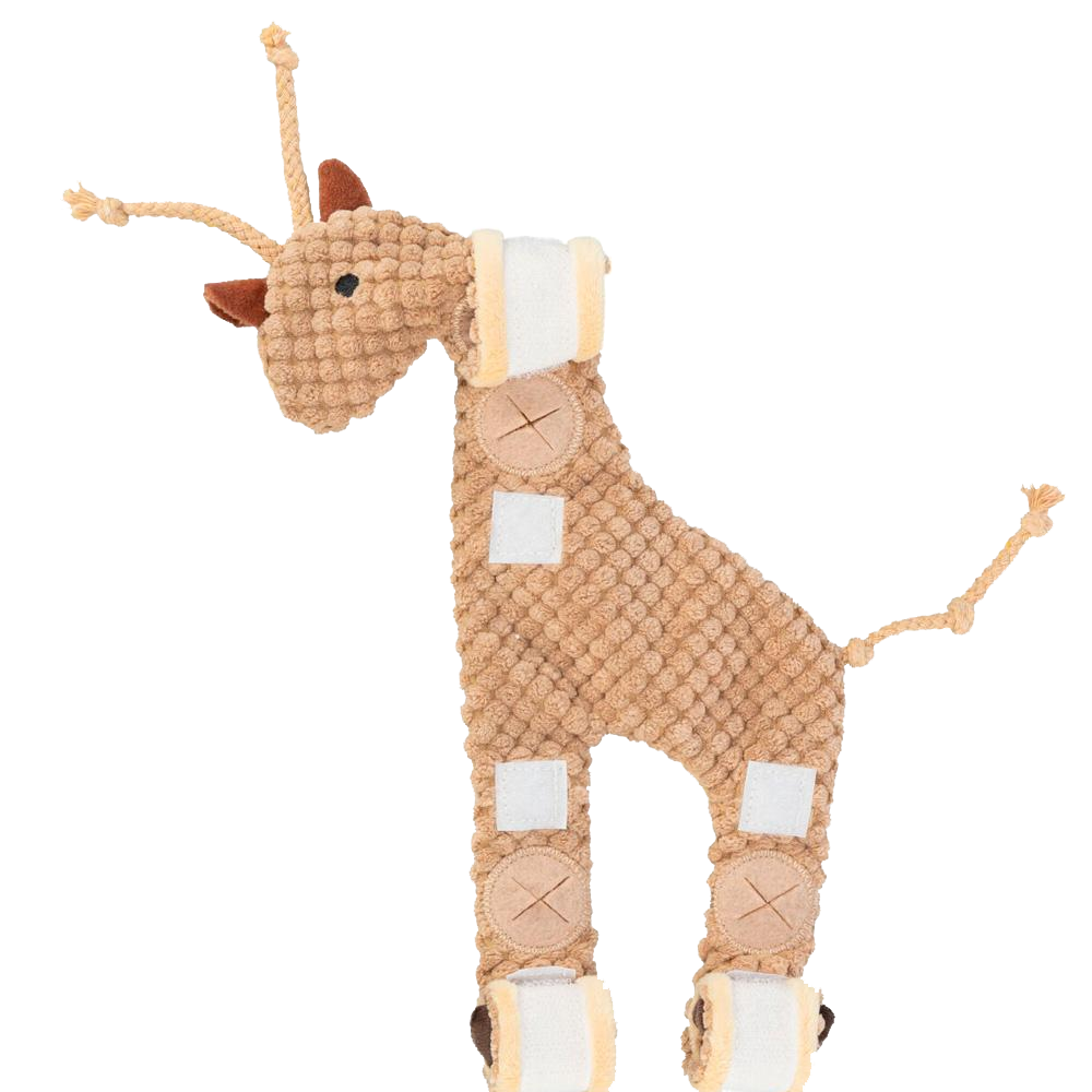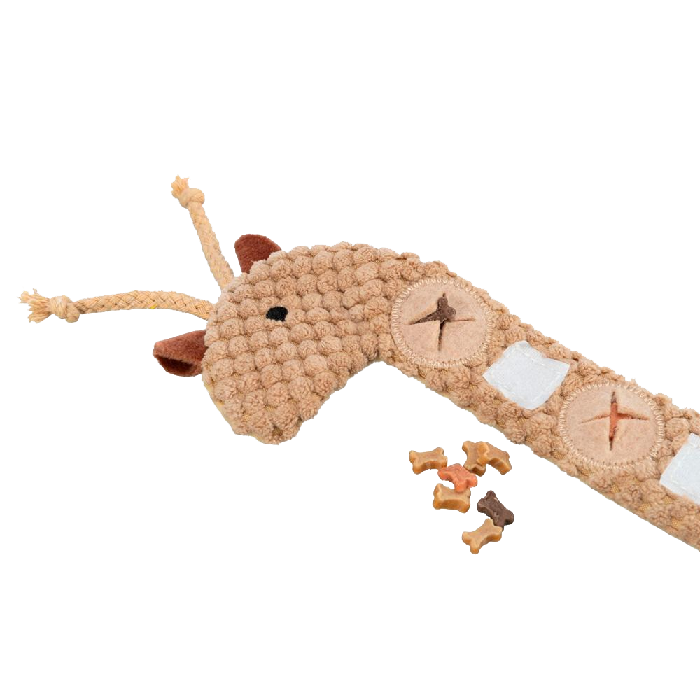 • Brinquedo para cão em forma de girafa castanho claro com pequenos ossos de brinquedo