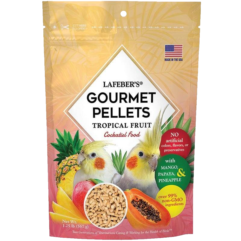Calopsita, Quaker, Rosella: 3 colheres de chá de Lafeber Gourmet Pellets Frutas Tropicais - Calopsita por dia