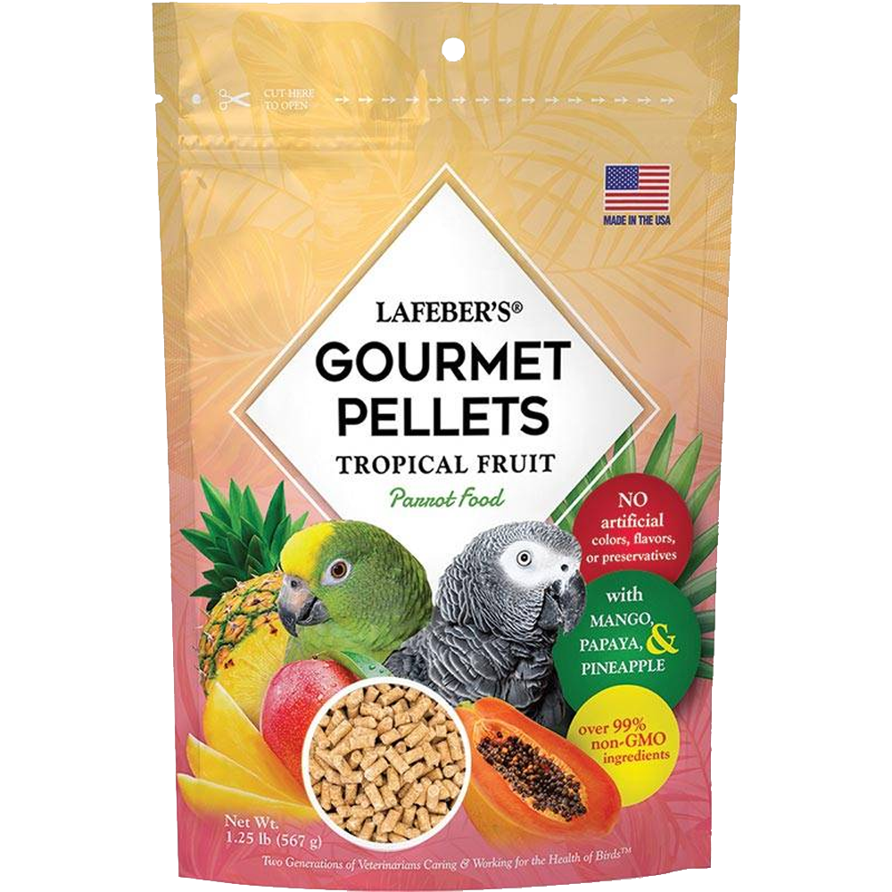 Papagaio Amazônico, Papagaio Nobre e Redstart Cinzento: 3 a 3,5 colheres de sopa de Lafeber Gourmet Pellets Frutas Tropicais - Papagaio por dia
