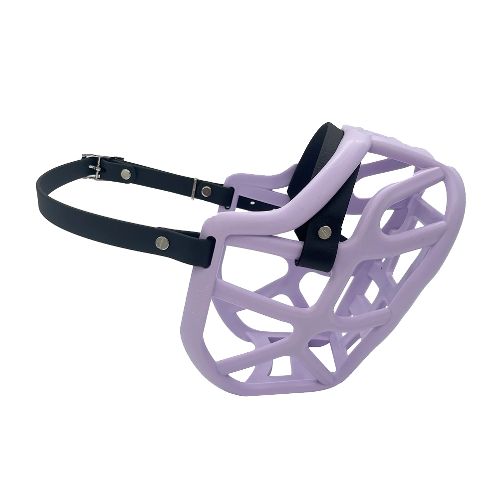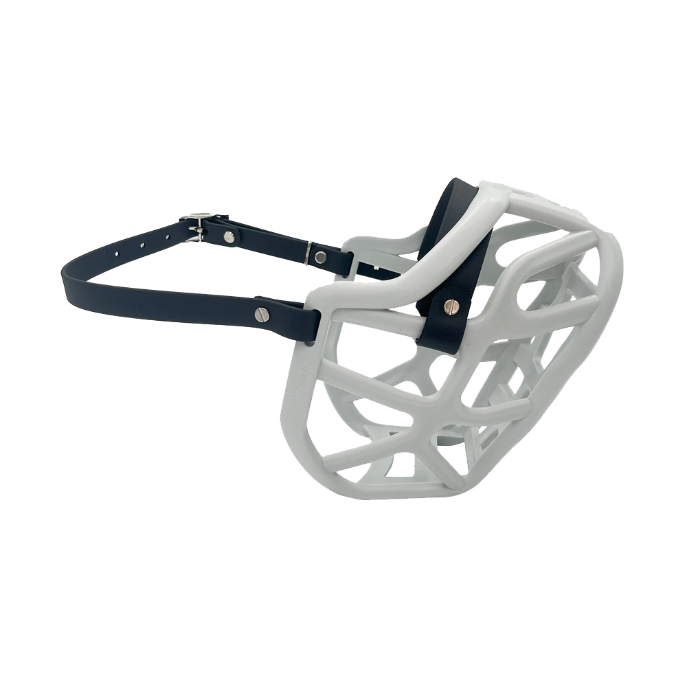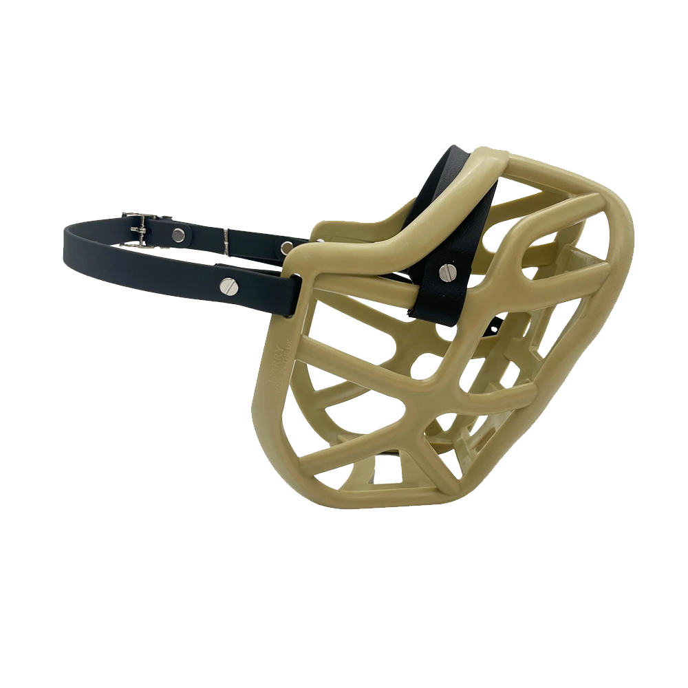 A diferença entre o Açaime Harry e Harry* é a largura da faixa nasal. O Harry* tem uma banda nasal Biothane com 38 mm de espessura que, quando combinada com o cesto Harry, pode acrescentar algum comprimento para os cães com focinho um pouco mais longo. A parte do cesto do açaime permanece a mesma. A faixa Harry* é vendida em separado aqui.