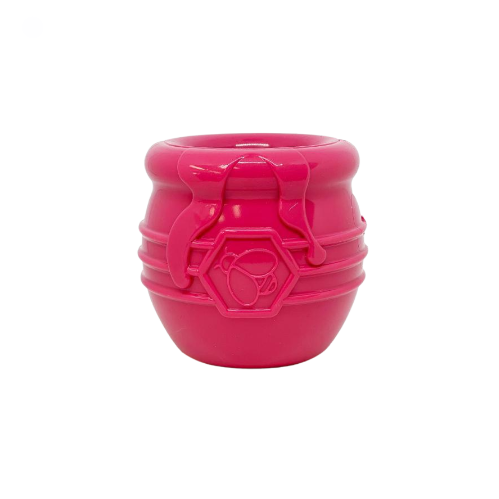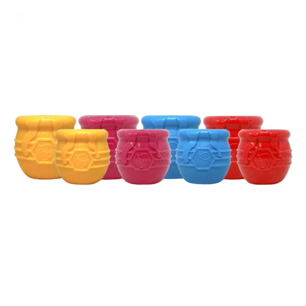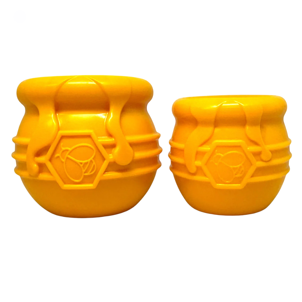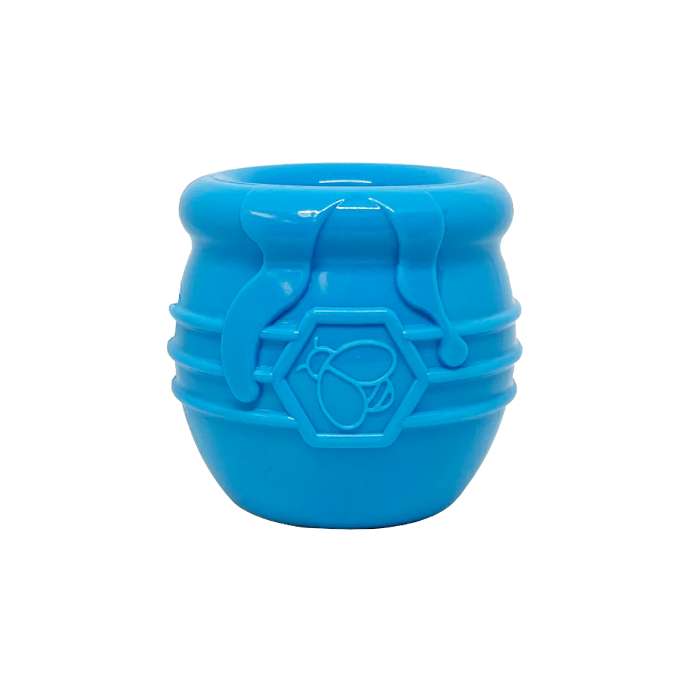 Ao longo dos anos, inspirámo-nos muito no design com a humilde abelha, criando eMats em forma de favo de mel, ossos mastigáveis em forma de palito de mel e dispensadores de snacks para ursos de mel. Agora, completamos a nossa coleção inspirada no mel com um pote de mel! O Ursinho Pooh iria adorar e o seu cão também. Este divertido dispensador de snacks eCup pode ser enchido com todos os tipos de alimentos e pode ser congelado para aumentar o desafio da alimentação.