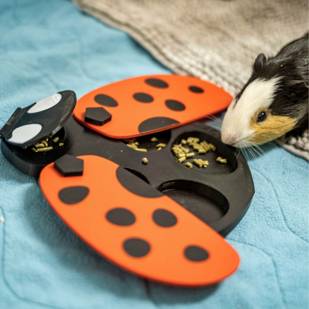 Esconda os snacks favoritos dos seus animais de estimação nos compartimentos da joaninha, dentro dos vários orifícios sob as asas e na cabeça da joaninha, e veja os seus animais de estimação descobrirem como tirá-los!