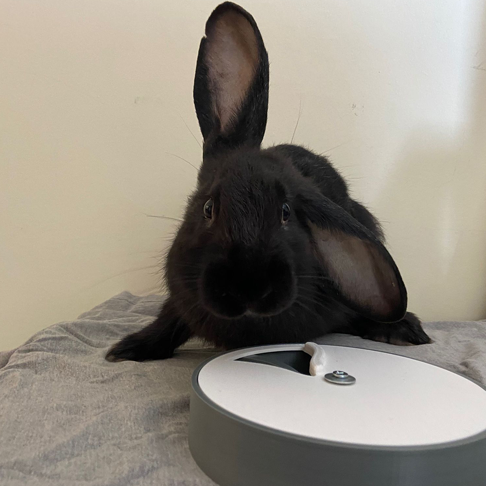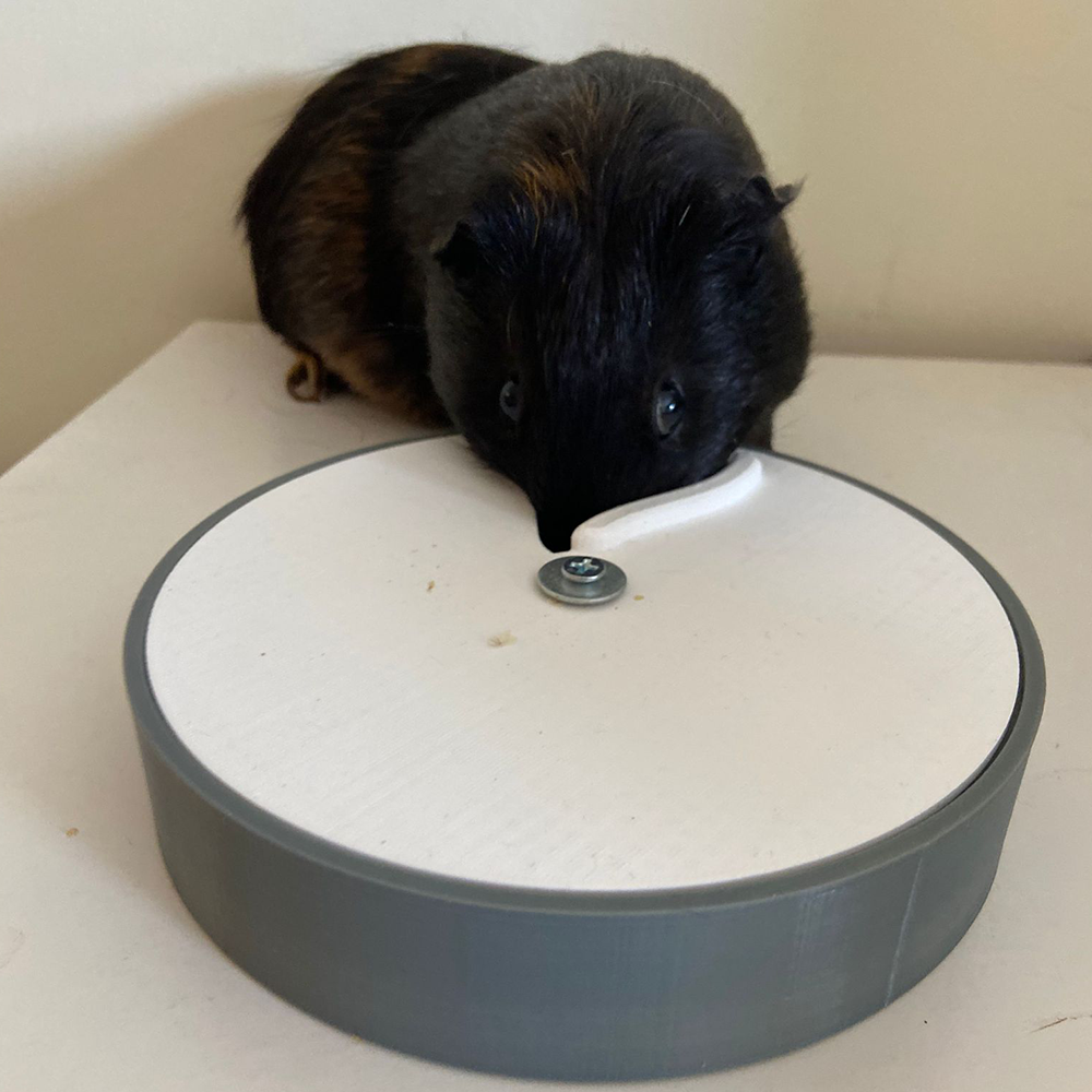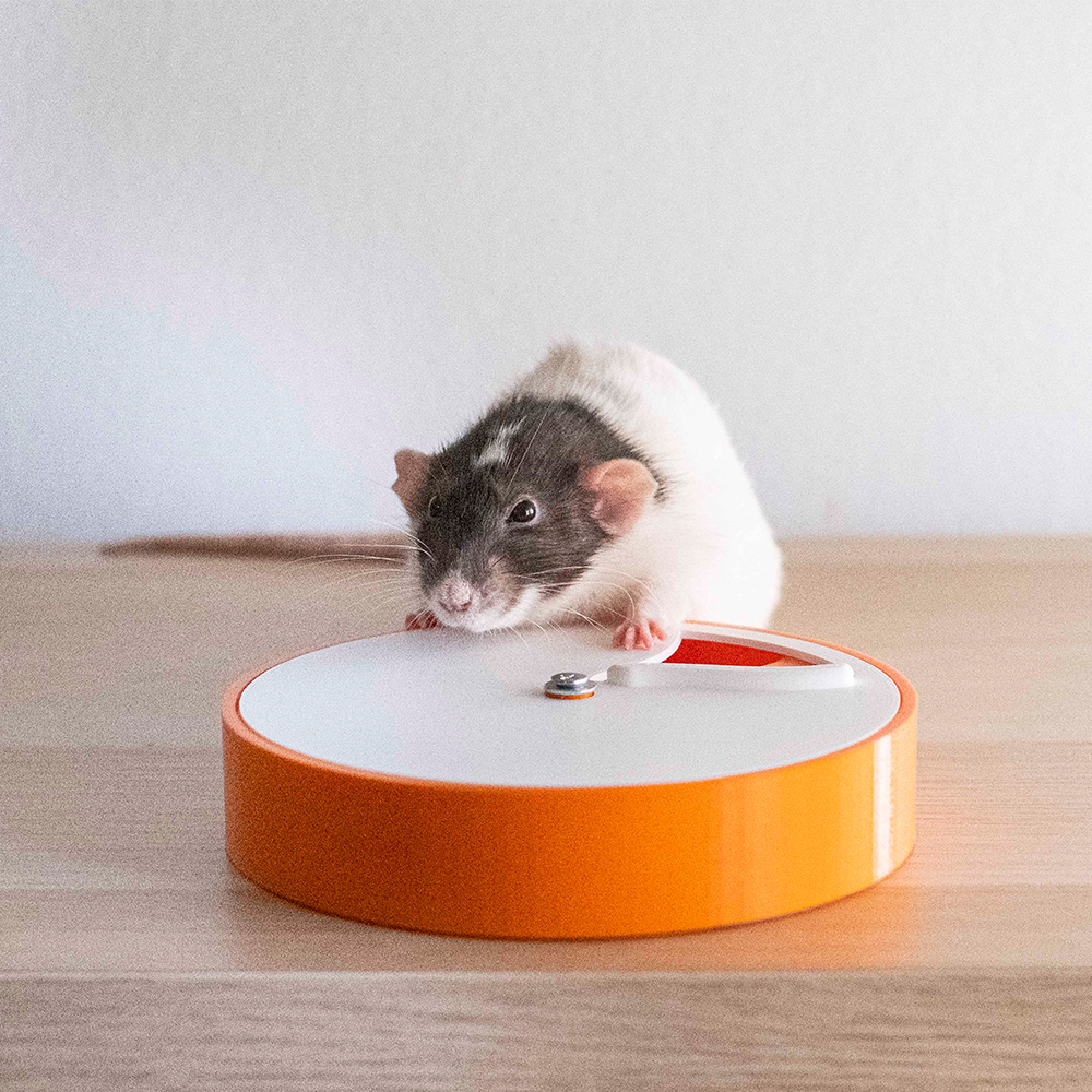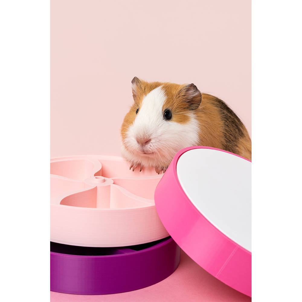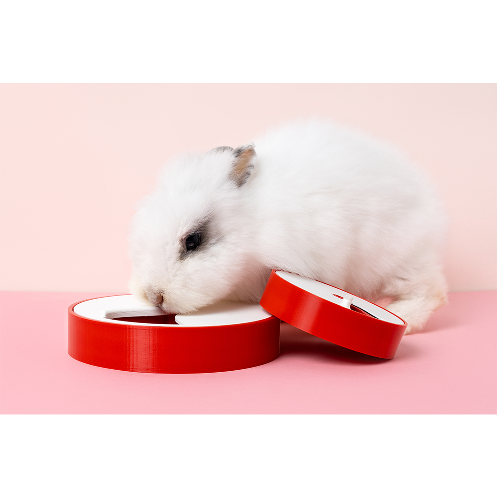 Este brinquedo é desenhado e produzido em Portugal, com recurso à tecnologia de impressão 3D. É feito em PLA, Ácido Poliláctico, que é um bioplástico feito através de recursos renováveis como o amido de milho e a cana de açúcar. O PLA usado na produção destes productos é também de produção nacional. O PLA é um material não tóxico e seguro para estar em contacto com os alimentos secos dos nossos animais.