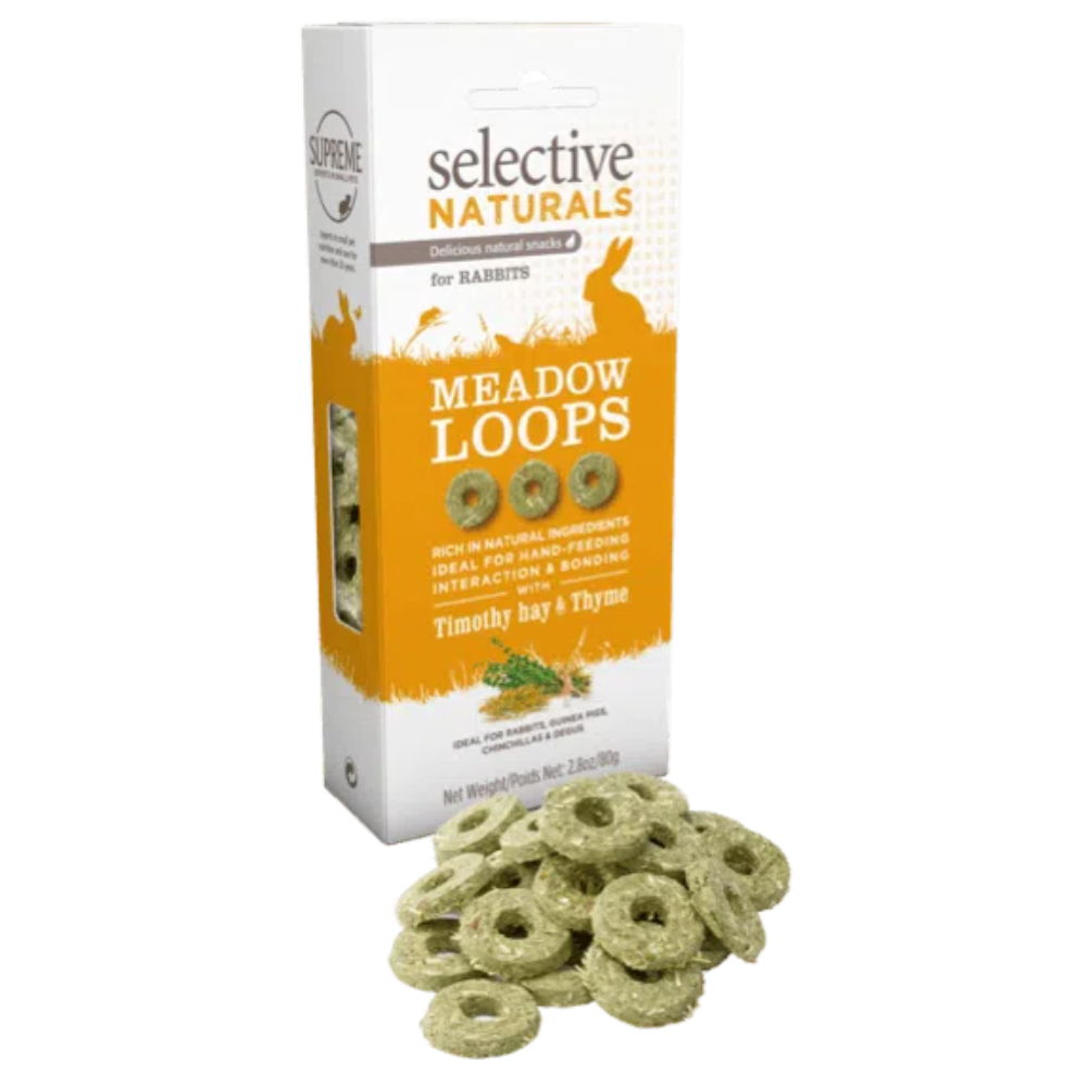 Science Selective é a mais vasta gama de alimentos específicos para cada espécie, recomendados por veterinários e formulados para satisfazer as necessidades nutricionais de pequenos animais de estimação peludos. Agora, mimar pequenos animais de estimação pode ser saudável e delicioso também, com Selective Naturals. Estes Meadow Loops com feno Timothy e tomilho são deliciosos snacks assados, feitos frescos na nossa padaria no coração de Suffolk, e são ricos em fibra, sem adição de açúcar – ideais para pequenos herbívoros.