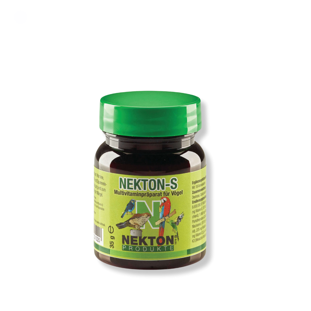 NEKTON-S contém todas as vitaminas necessárias e é também enriquecido com aminoácidos, minerais e oligoelementos. Uma deficiência de vitaminas (hipovitaminose) é dificilmente detectável nas aves e, no entanto, se for prolongada, pode prejudicar gravemente a saúde, podendo levar a perder a mascote prematuramente. Cerca de 90% de todas as doenças que ocorrem nas aves são causadas por uma alimentação insuficiente.