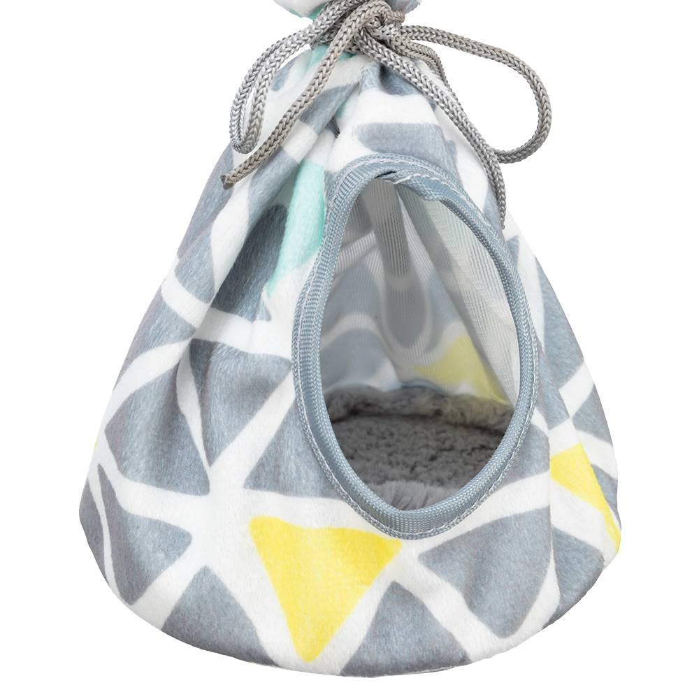 • Ninho para animal de estimação em tecido com padrão geométrico colorido e cordão de ajuste