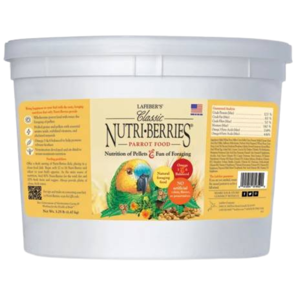 Nutri-Berries Classic, da Lafeber, contém todos os nutrientes essenciais para uma boa saúde e o seu formato estimula o exercício do bico e da língua, proporcionando enriquecimento nutricional, fisico, comportamental e ambiental.