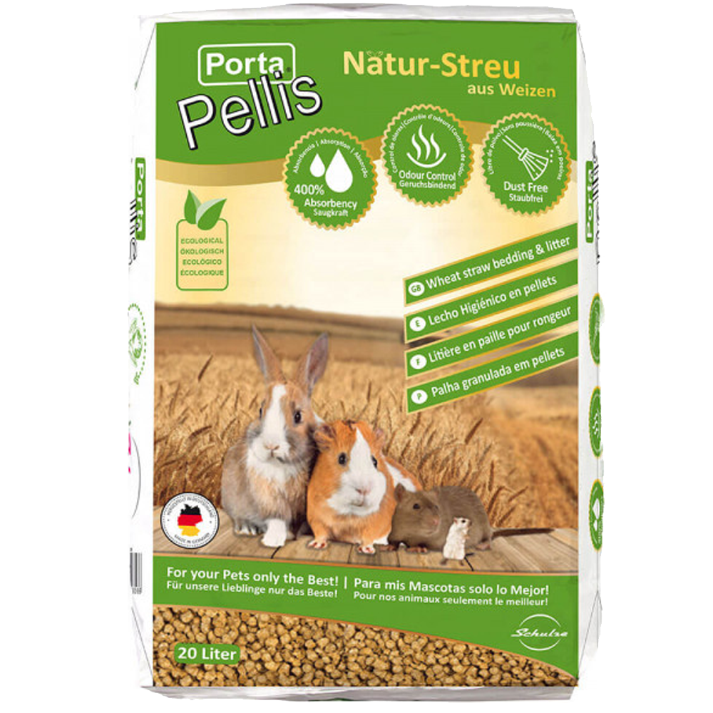 Porta Pellis Granulado de palha é feito com palha de trigo seca e baixa em poeiras. O absorvedor de odores biológico adicionado certifica que a cobertura permanece fresca por mais tempo e que os odores desagradáveis são imediatamente absorvidos. O agradável aroma natural de palha deste produto torna-o ainda mais atrativo.