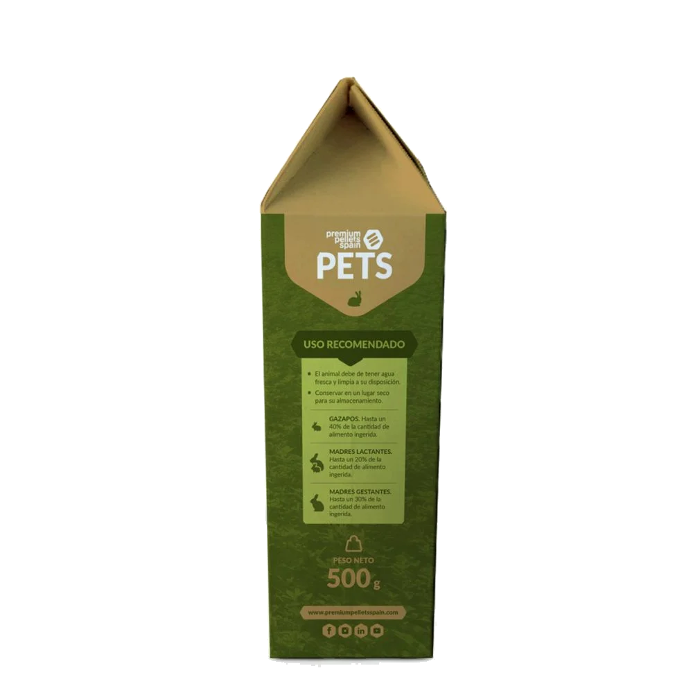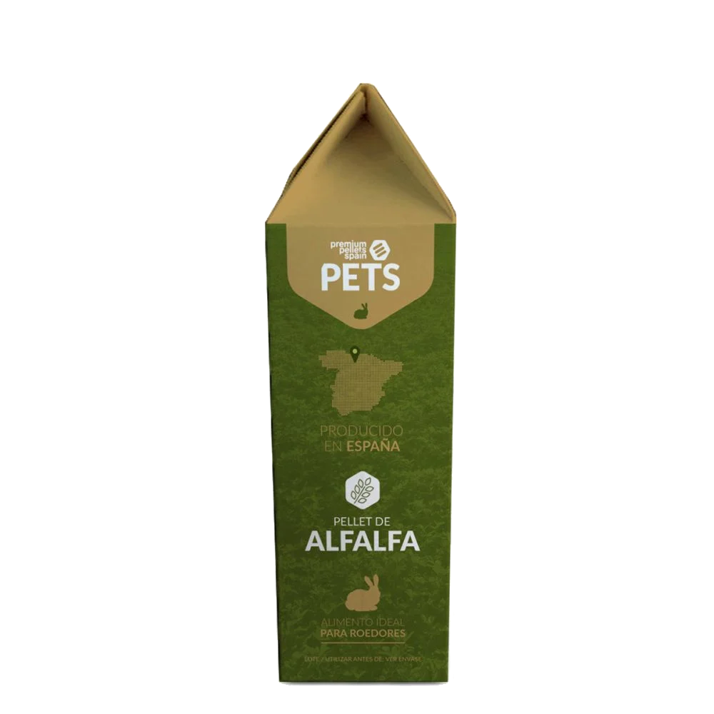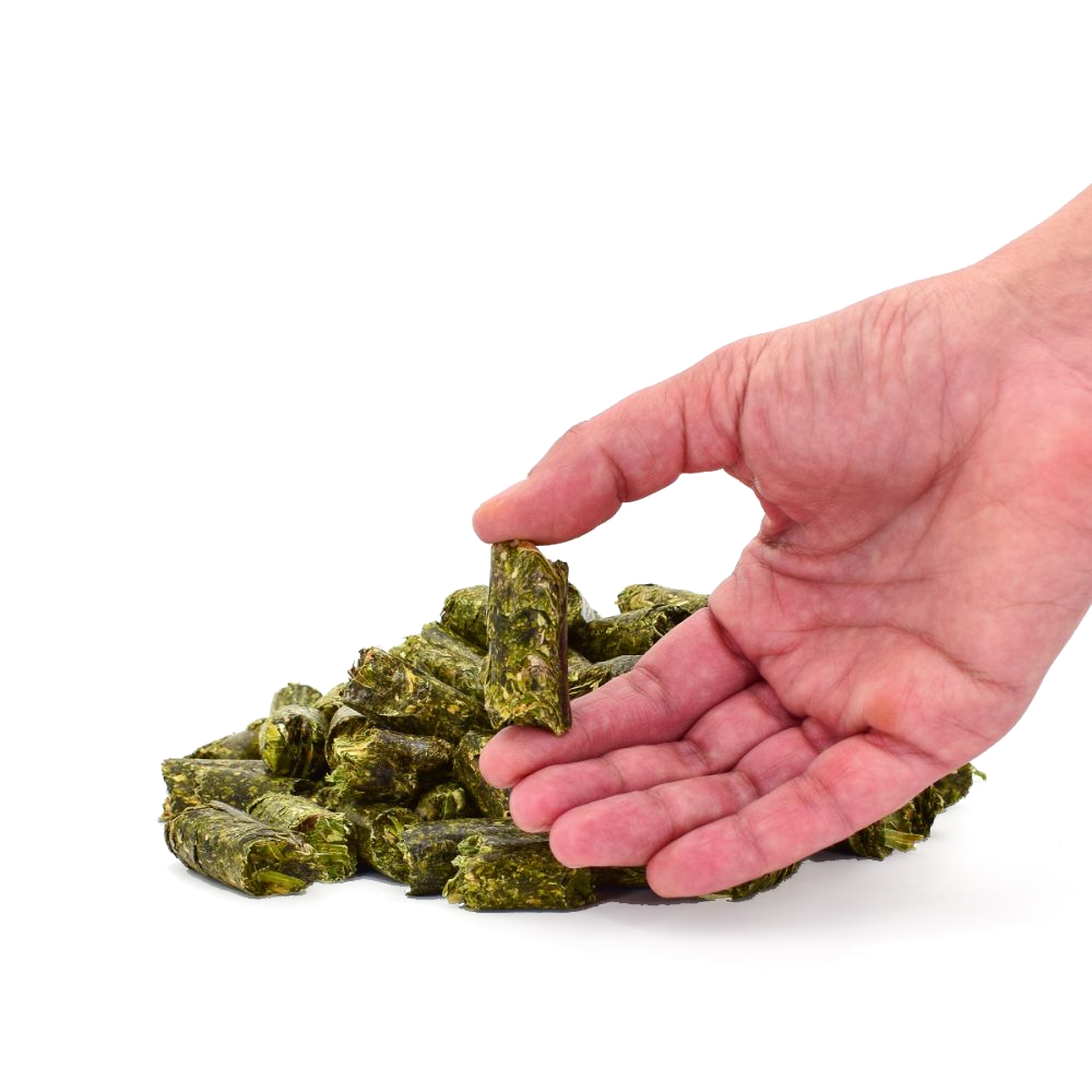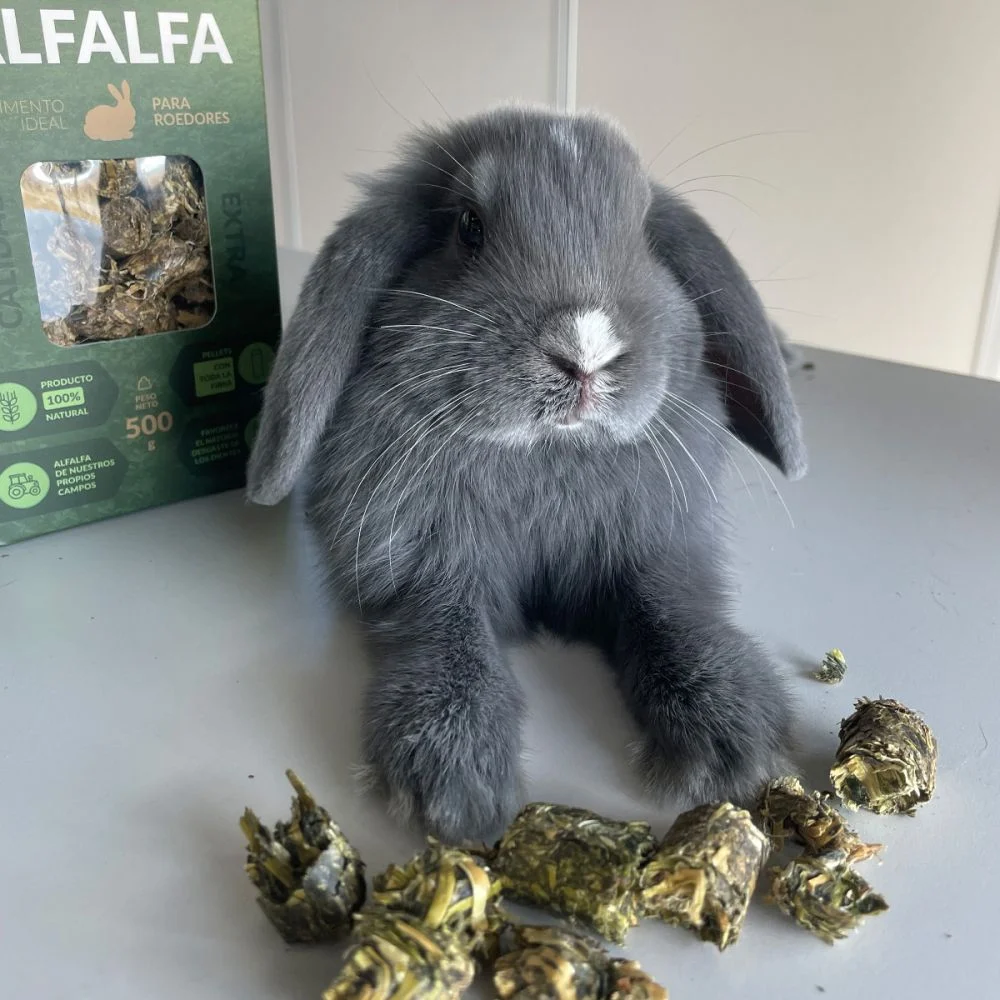 Pellets de alfafa com diâmetro de 16mm, com fibra longa de 1 a 2,5 cm, o que torna o produto um formato perfeito para coelhos e roedores herbívoros.