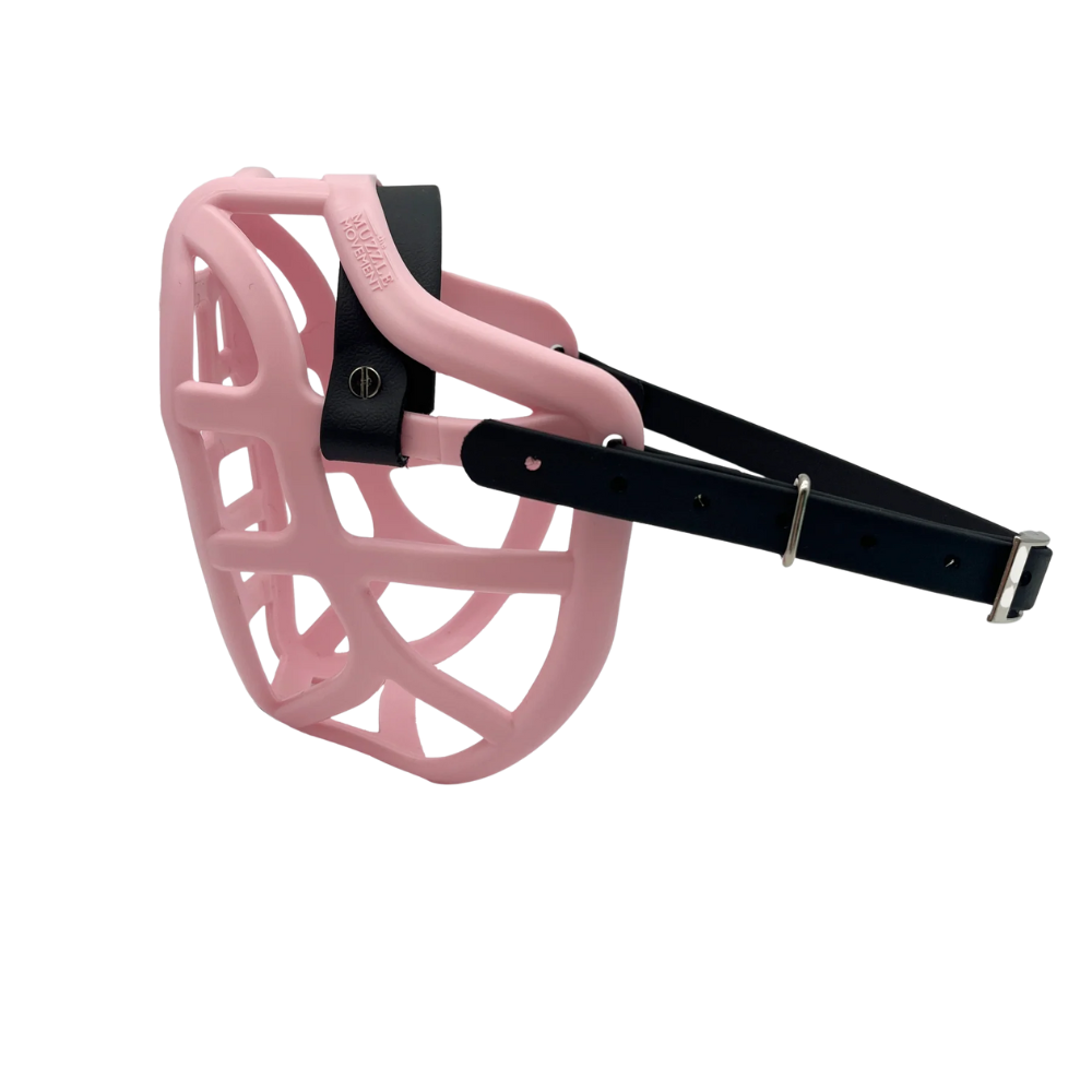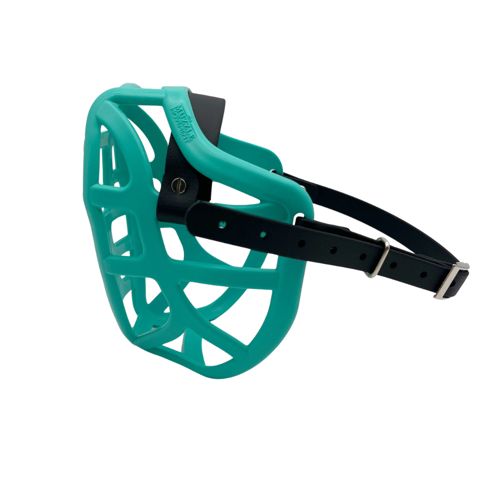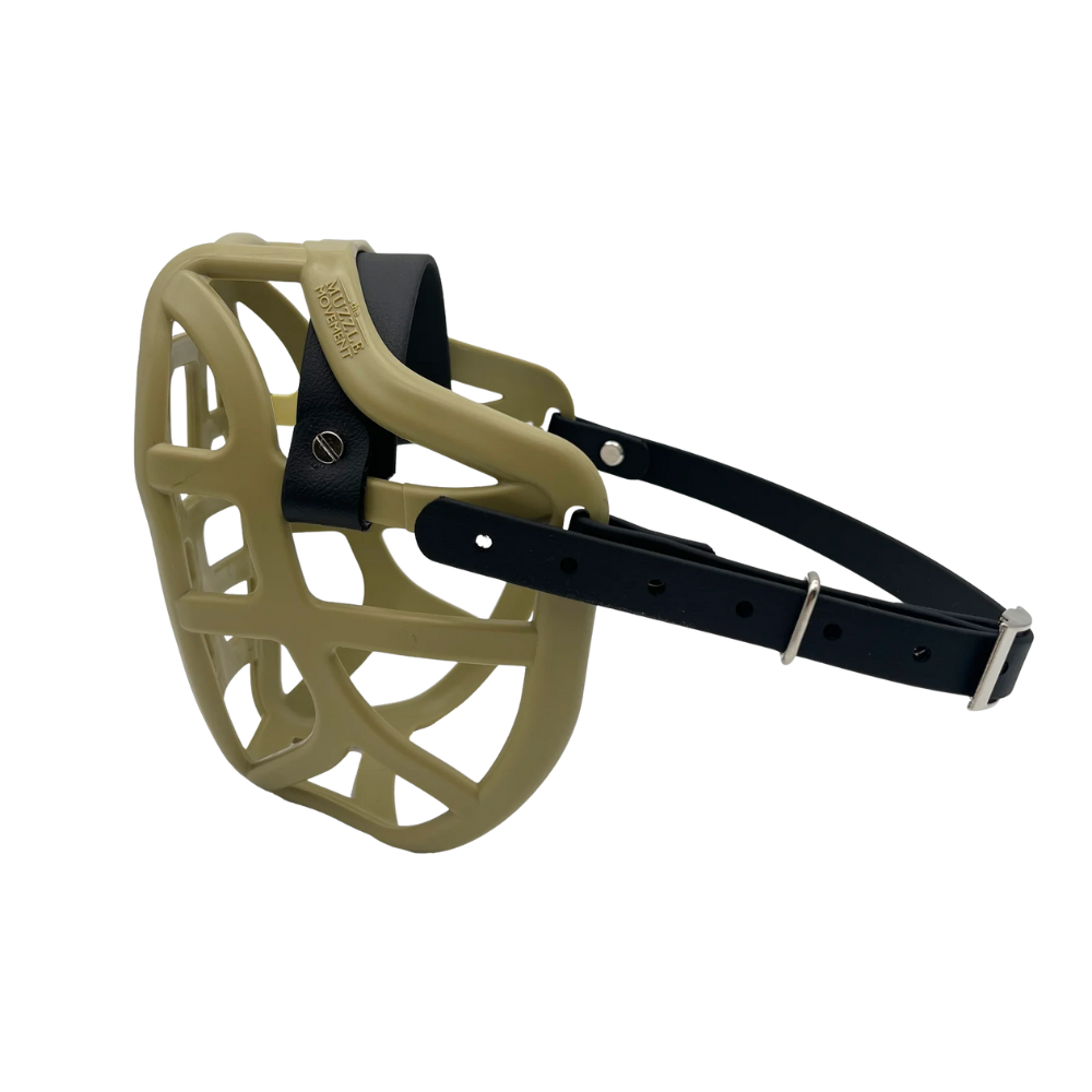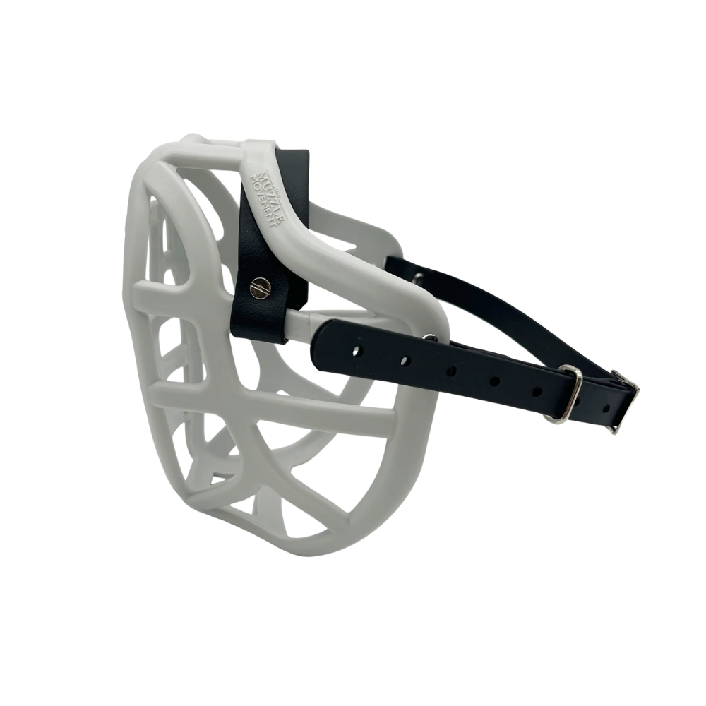 Todos os açaimes vêm de fábrica com as fivelas em preto, uma faixa nasal e uma tira de pescoço ajustável com fecho de fivela. As tiras são presas com parafusos ajustaveis (chicago screws) o que significa que podem ser removidas ou recolocadas sem as cortar.