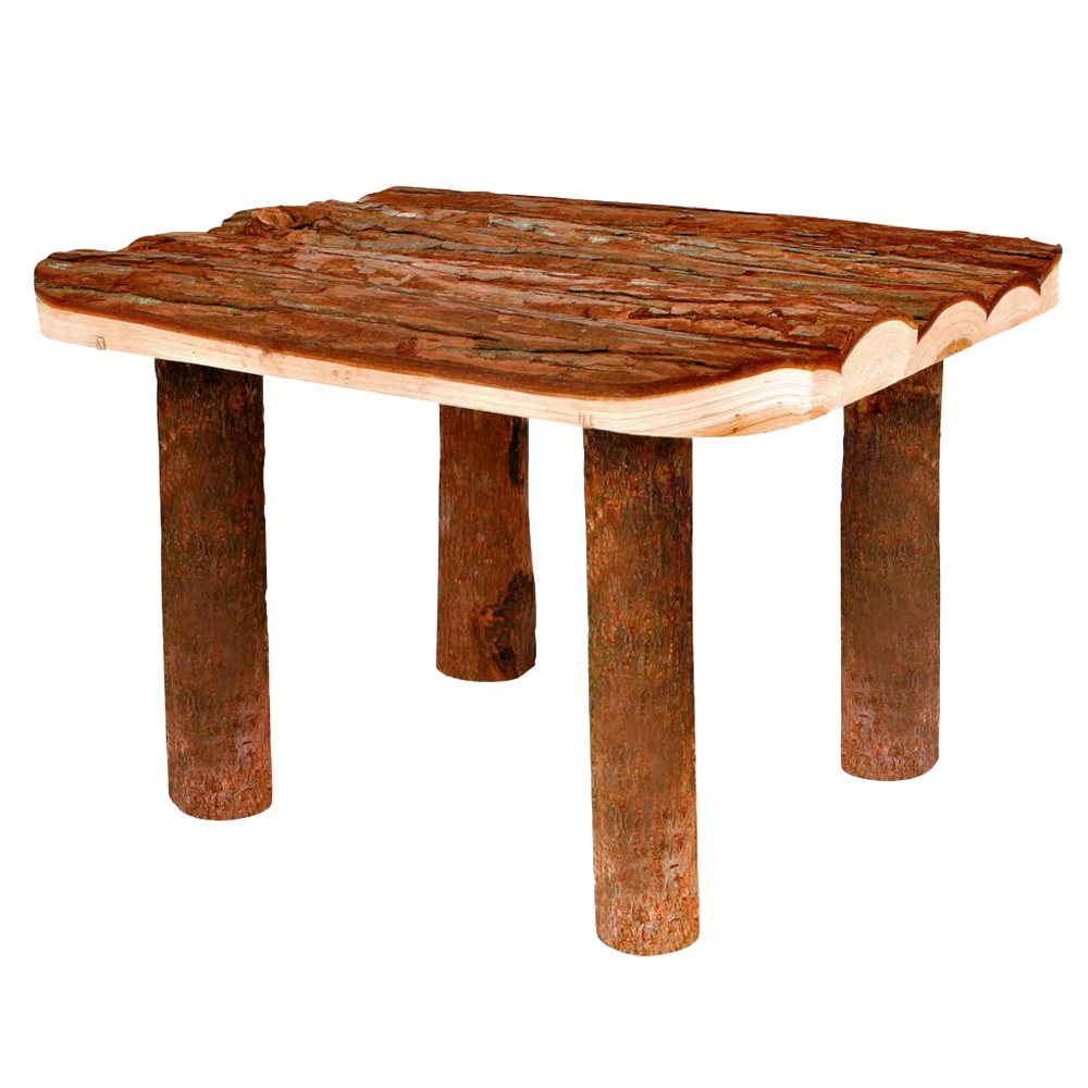 Mesa rústica quadrada de madeira com tampo e pernas de tronco natural