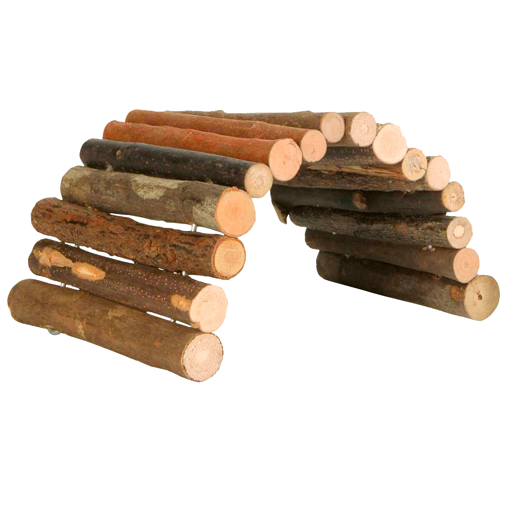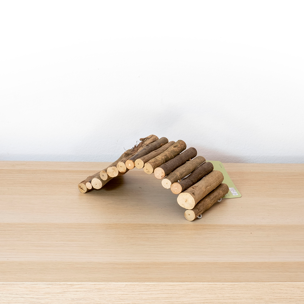 • Estrutura curva de ramos de madeira com casca sobre mesa de madeira clara