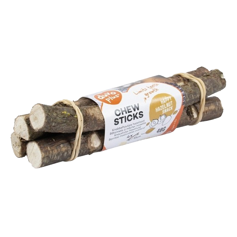 Duvo+ Chew Sticks Avelã são raminhos de madeira para os roedores, ideais para oferecer como recompensa ou brinquedo de estimulação física. Evita que o roedor se sinta entediado, ao mesmo tempo que ajuda no desgaste natural dos dentes. Estes sticks devem ser oferecidos com moderação.
