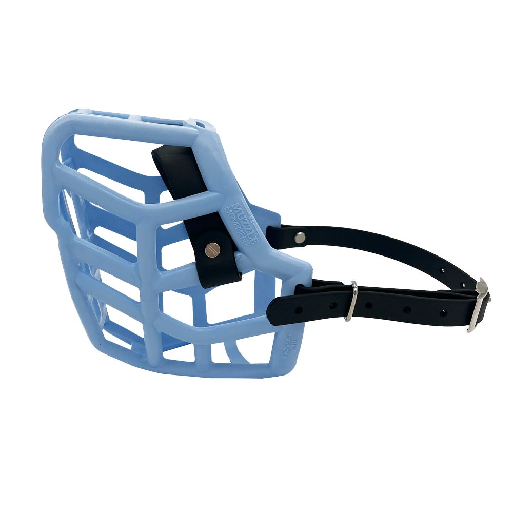 Todos os açaimes vêm de fábrica com as fivelas em preto, uma faixa nasal e uma tira de pescoço ajustável com fecho de fivela. As tiras são presas com parafusos ajustaveis (chicago screws) o que significa que podem ser removidas ou recolocadas sem as cortar.