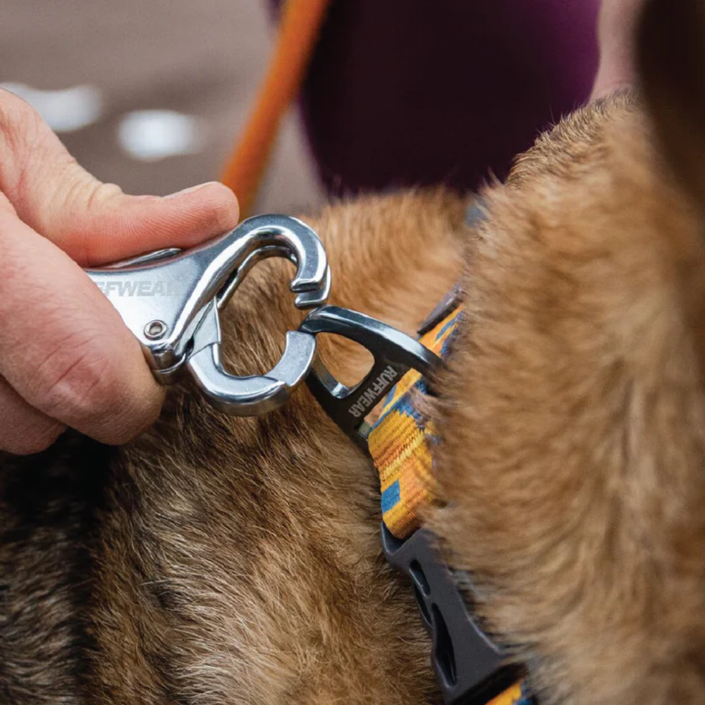 A fivela de libertação lateral na correia é fácil de utilizar e reforçada com um laço único de alumínio para uma resistência excecional, ajustando-se facilmente quando é utilizada na cintura. O exclusivo Talon Clip™ da Ruffwear oferece uma ligação forte e segura com o seu cão.