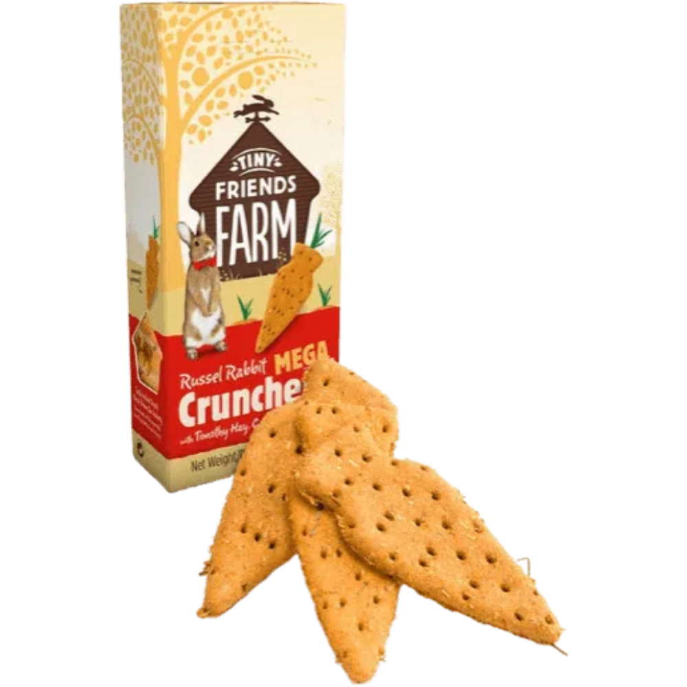 Podem ser oferecidos cuidadosamente na mão, ajudando a criar momentos especiais a dois. Um deles também pode ser escondido na gaiola do seu animal de estimação para estimular a procura natural de alimento. E lembre-se de dar bastante feno fresco aos seus coelhos todos os dias! Os biscoitos Russel Rabbit Mega Crunchers também são adequados para porquinhos-da-índia., hamsters, gerbos, ratos e ratazanas.