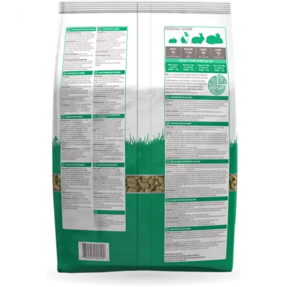Um coelho adulto médio (2,5 kg) necessitará de 60 a 70 g/dia de Selective House Rabbit. Devem também ser fornecidos vegetais frescos, juntamente com feno de boa qualidade e água potável limpa. Armazene em local fresco e seco.