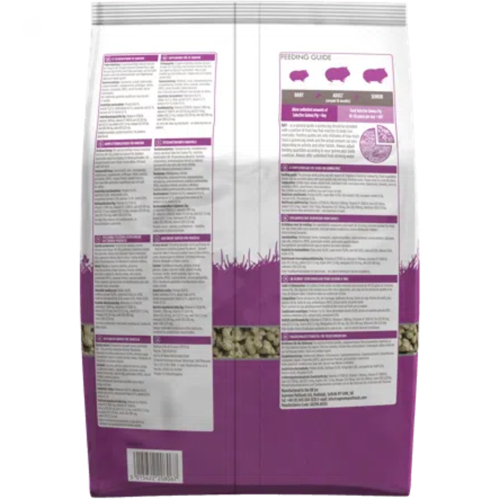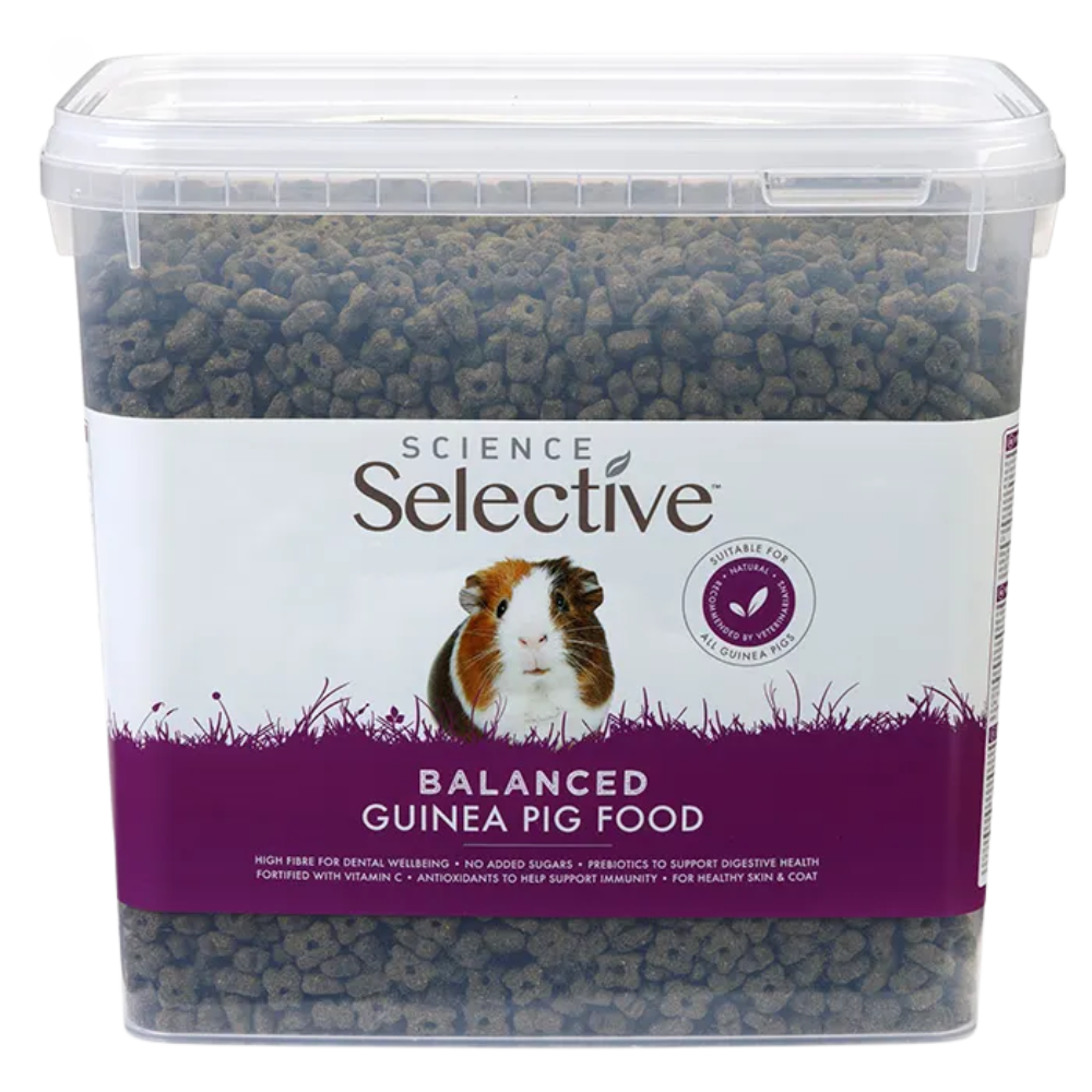 Um porquinho-da-índia adulto médio necessitará de 40 a 50 g/dia de Selective Guinea Pig. Devem também ser fornecidos vegetais frescos, juntamente com feno de boa qualidade e água potável limpa. Armazene em local fresco e seco.