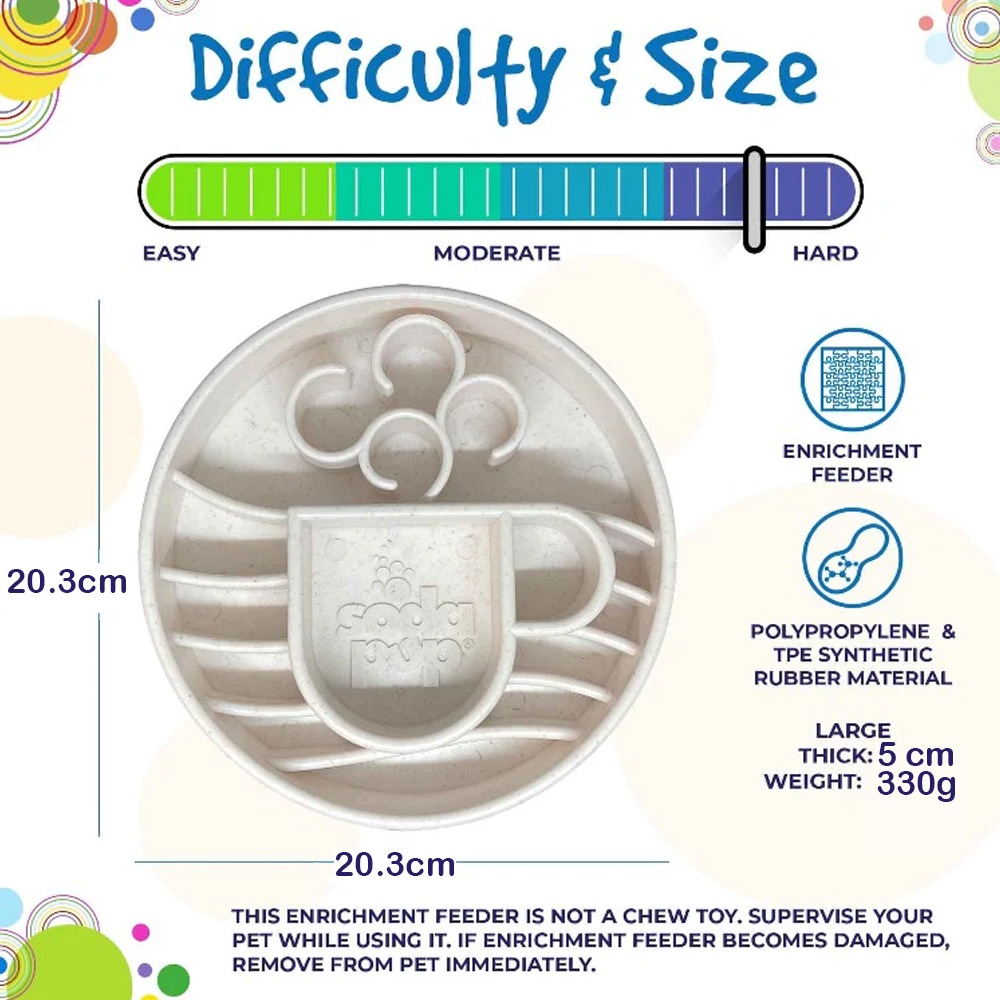 Introducing the Java Design eBowl Enrichment Slow Feeder Bowl. Inspired by all those who love their cup of morning coffee, or their afternoon and evening cups as well! Designed to slow down eating and stimulate foraging instincts, this bowl keeps your canine happy and satisfied. No more gulping food, just enjoyable meals with our "Java" bowl.