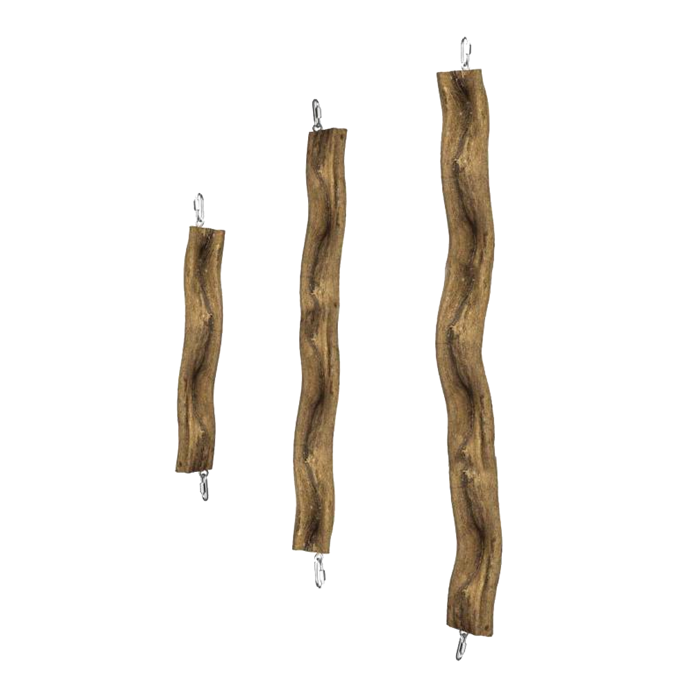• Brinquedos para pássaros feitos de madeira curva com ganchos metálicos