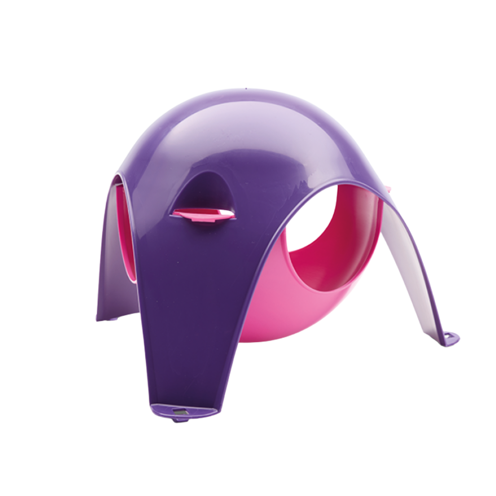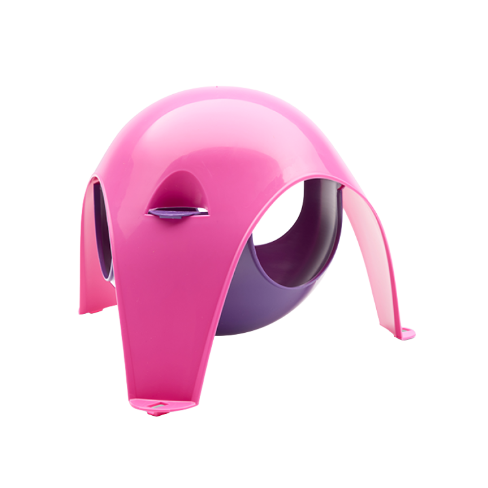 • Abrigo para animais rosa e roxo em plástico com base de três patas
