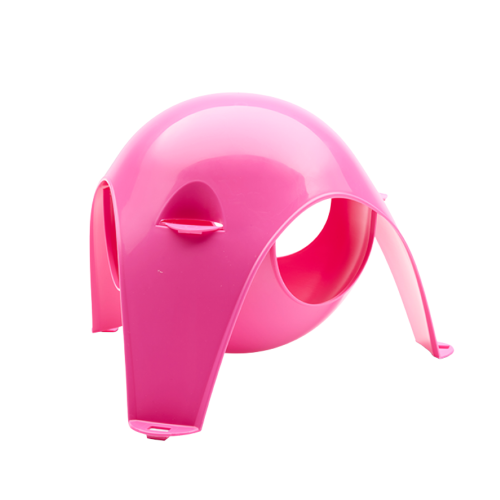 • Estrutura plástica cor-de-rosa arredondada com orifícios em fundo branco