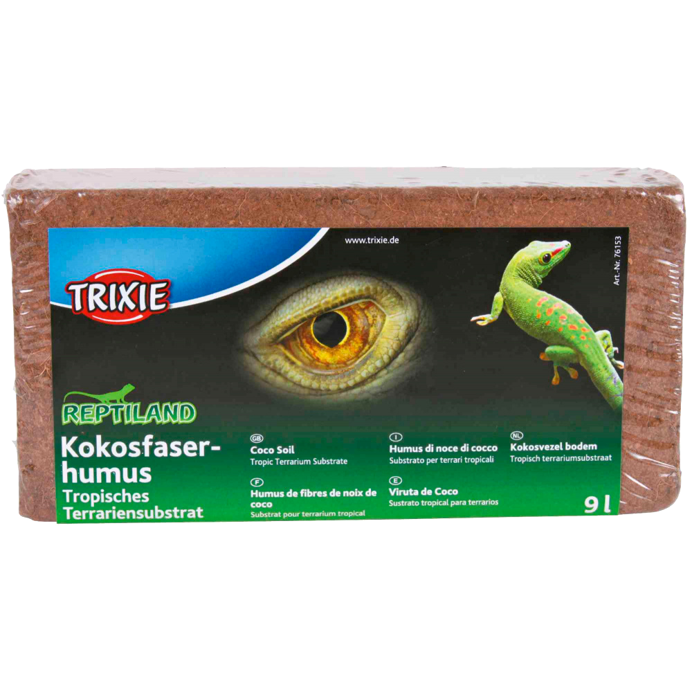 • Embalagem de substrato tropical de fibra de coco Trixie Reptiland 9L com imagem de réptil