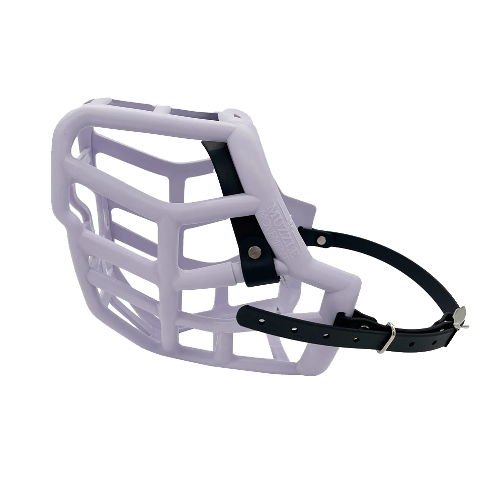 A diferença entre o açaime Sunny e o Sunny* é a largura da faixa nasal. O Sunny* tem uma banda nasal Biothane com 38 mm de espessura que, quando combinada com o cesto Sunny, pode acrescentar algum comprimento para os cães que precisam. A parte do cesto do açaime permanece a mesma. A faixa Sunny* é vendida em separado aqui.