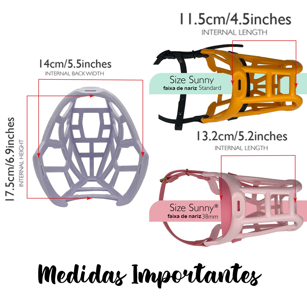 Lembre-se que cada marca de açaimes terá as suas medidas diferentes, então veja sempre as recomendações da marca e faça as medidas como solicitado.