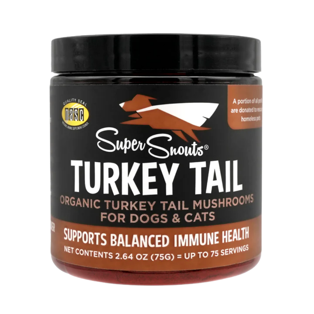 Turkey Tail é um suplemento alimentar 100% natural para cães e gatos, isento de corantes, conservantes, aditivos e subprodutos. É composto exclusivamente pelo cogumelo medicinal orgânico Turkey Tail (Trametes versicolor), conhecido pelas suas potentes propriedades imunomoduladoras e pelo seu auxílio no tratamento de doenças como o cancro, fortalecendo naturalmente o sistema imunitário.
