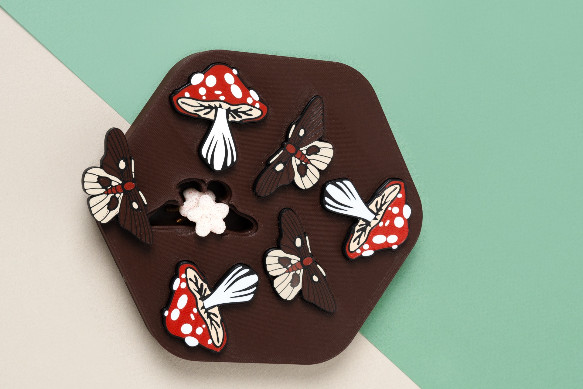 Tabuleiro de Foraging cogumelos e traças