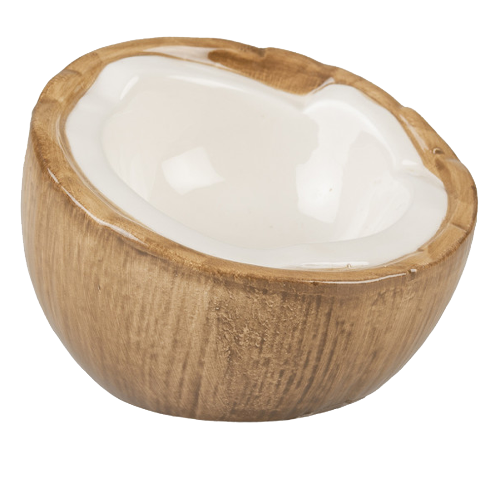 Taça em forma de coco, feita em cerâmica vitrificada de alta qualidade, forte e resistente. Este produto é ideal para pequenos roedores. Lavável na máquina de lavar louça.