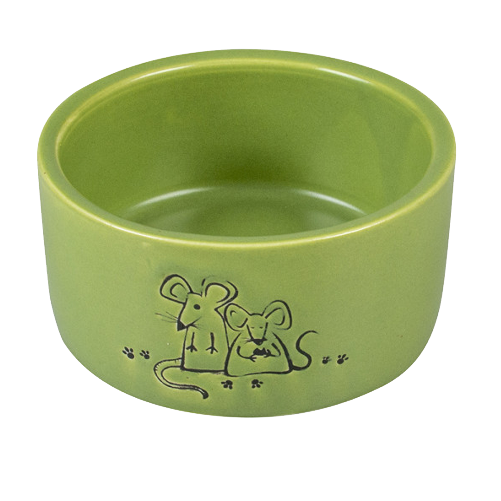 • Taça de cerâmica verde com desenho de ratinhos